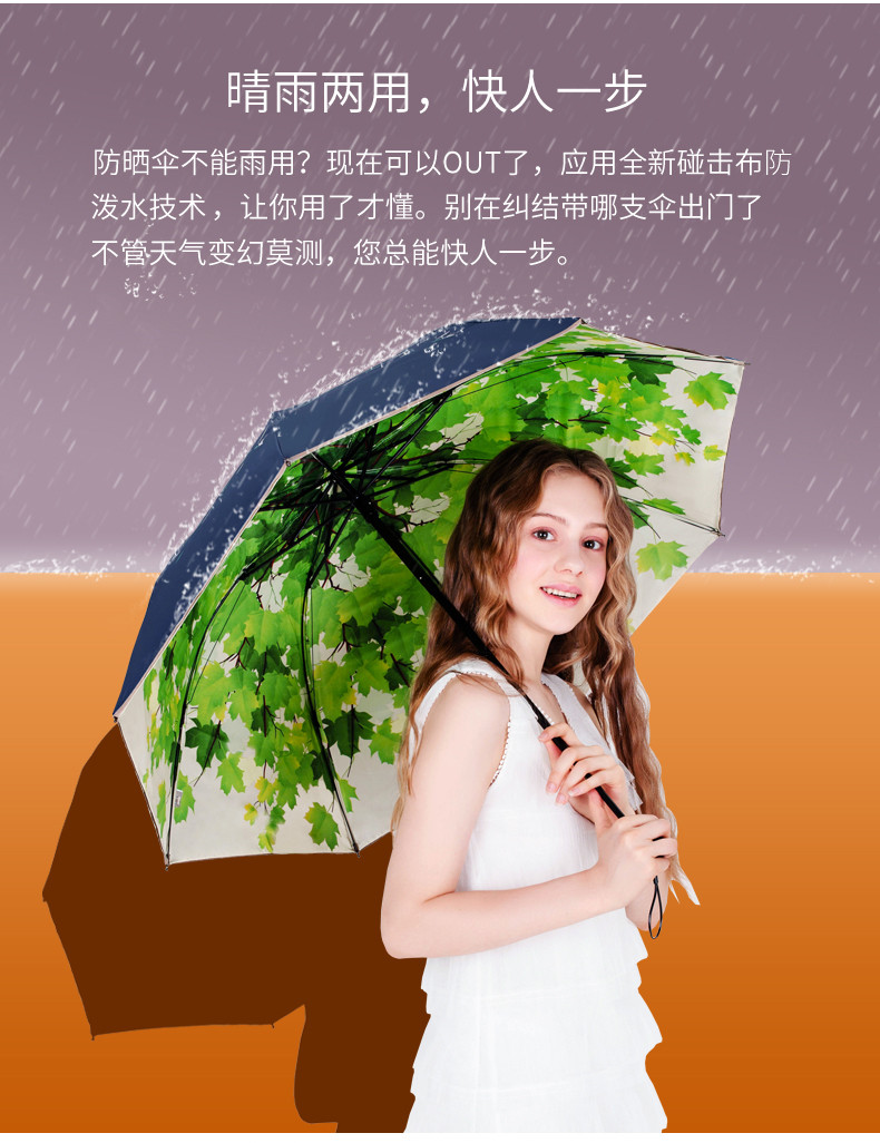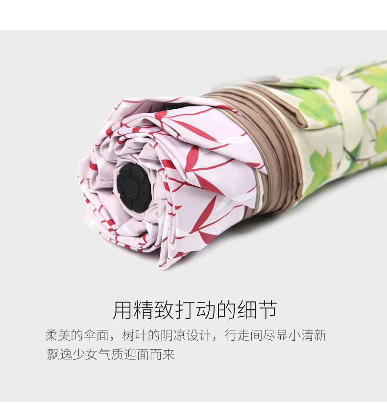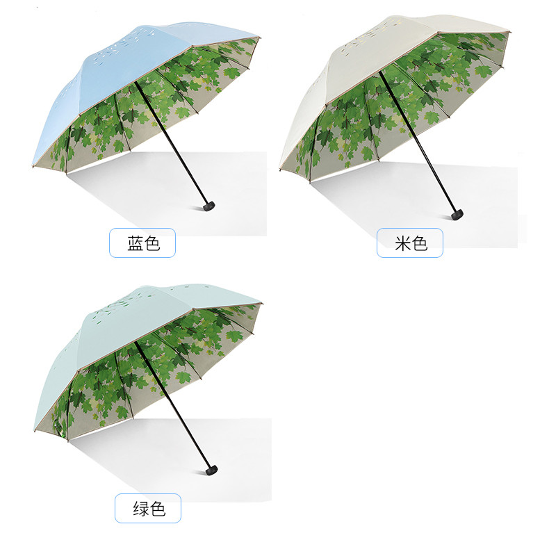 天堂伞太阳伞防晒防紫外线遮阳伞女双层黑胶小清新折叠晴雨伞两用 藏青色(双层树叶) 自营