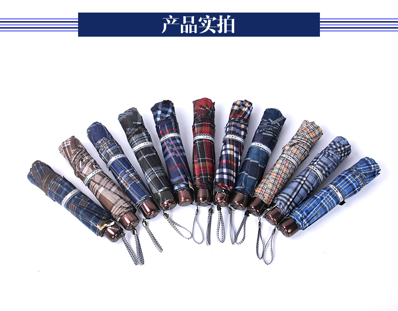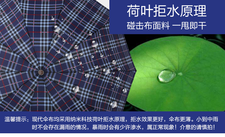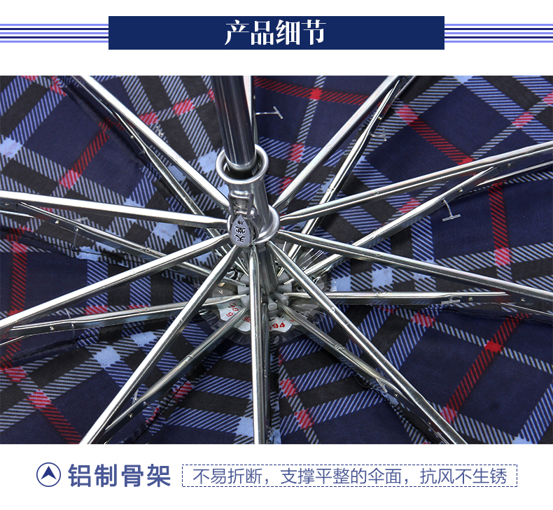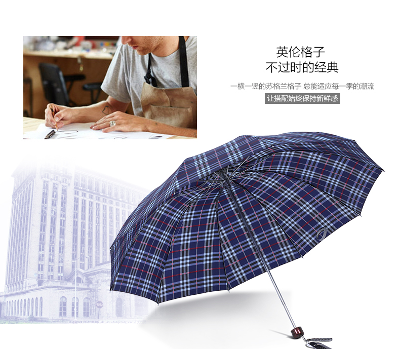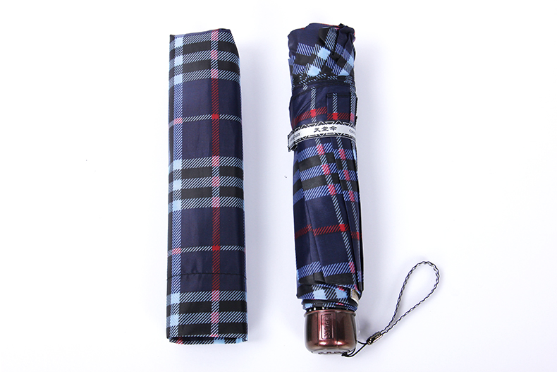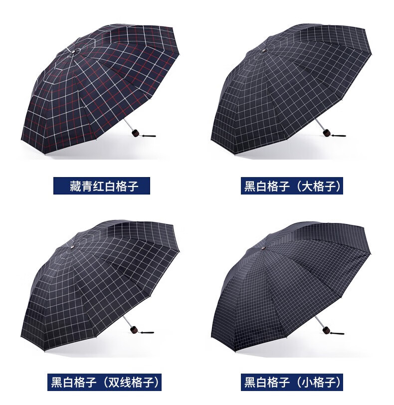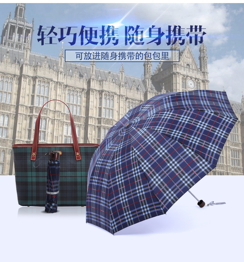 天堂伞格子伞男女士三折叠伞超大号十骨双人商务伞遮阳伞两用晴雨伞 幽蓝色 自营