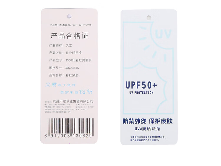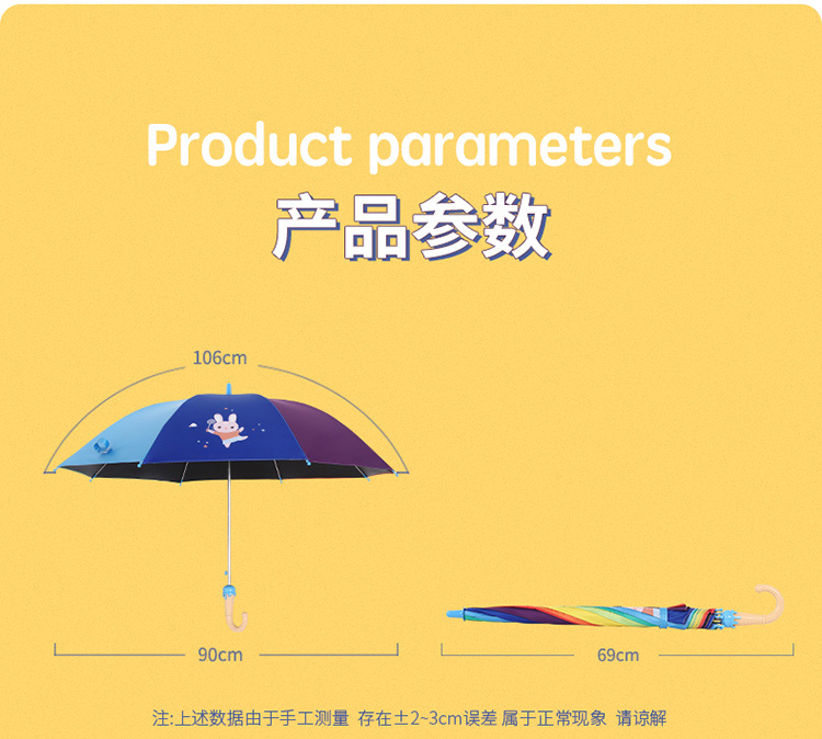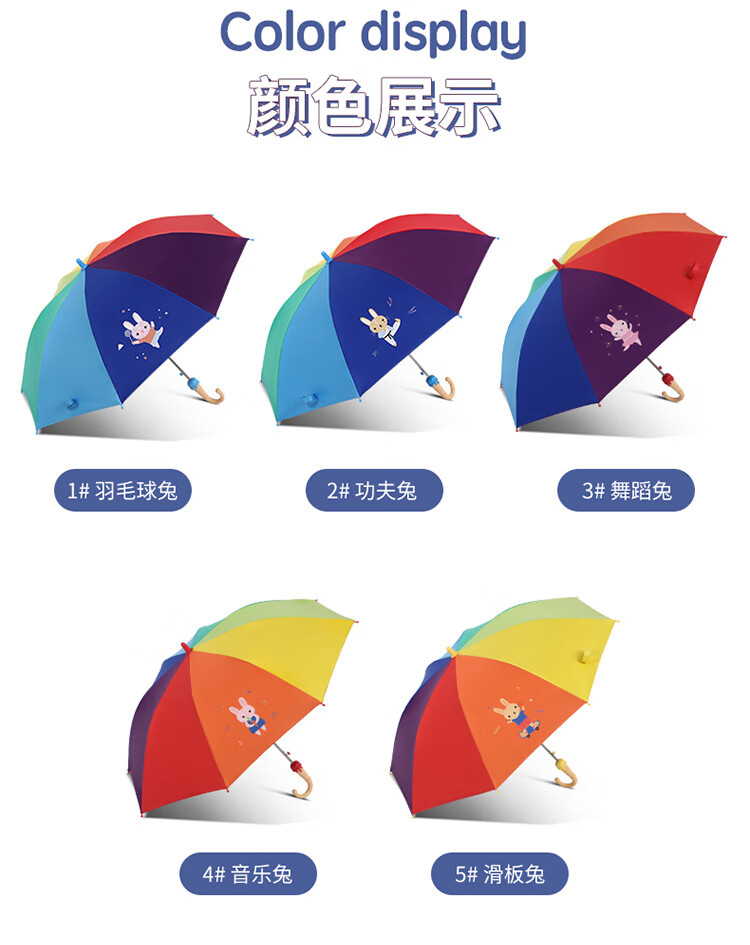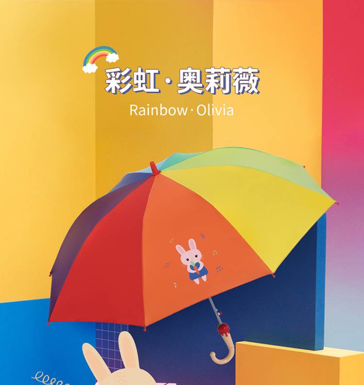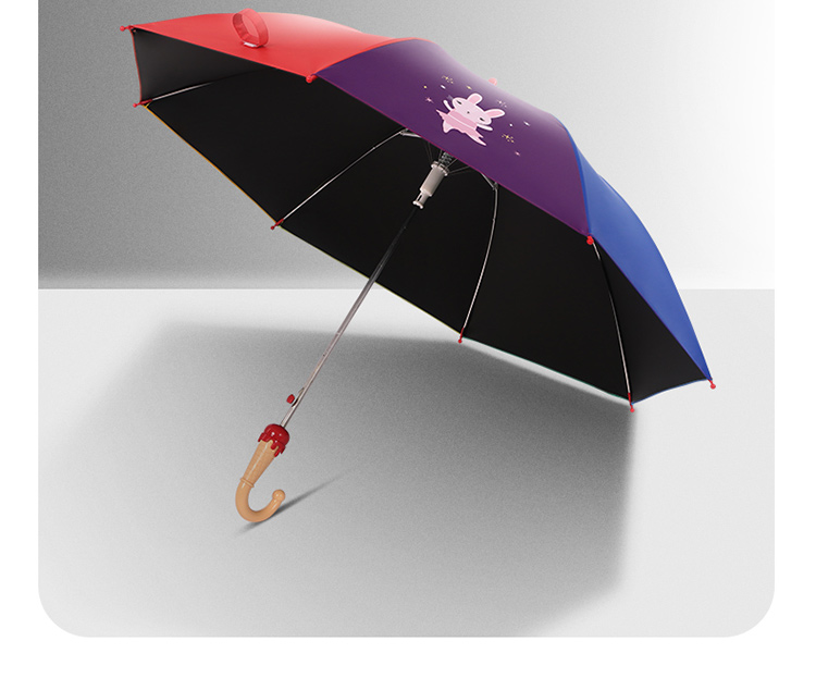 天堂伞 晴雨伞直柄黑胶防晒太阳伞可爱青少年晴雨伞 功夫兔 53CM*8骨