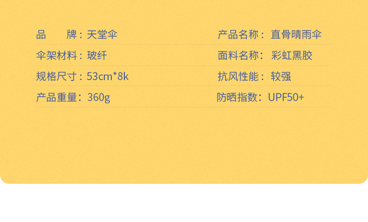 天堂伞 超大黑胶碳纤骨76cm*8骨直杆商务晴雨伞31831E藏青色