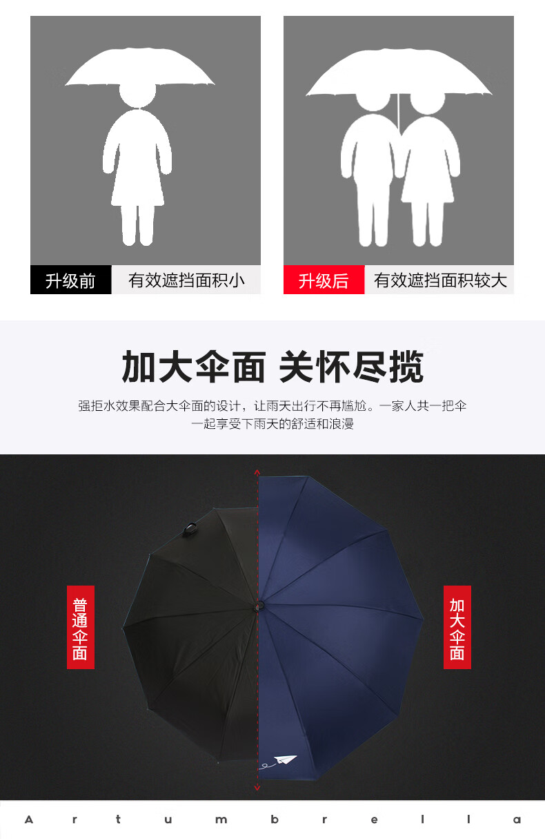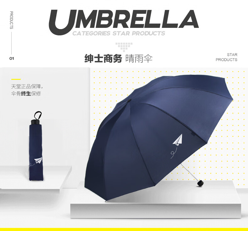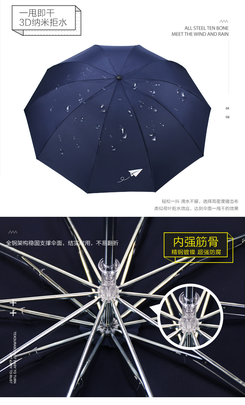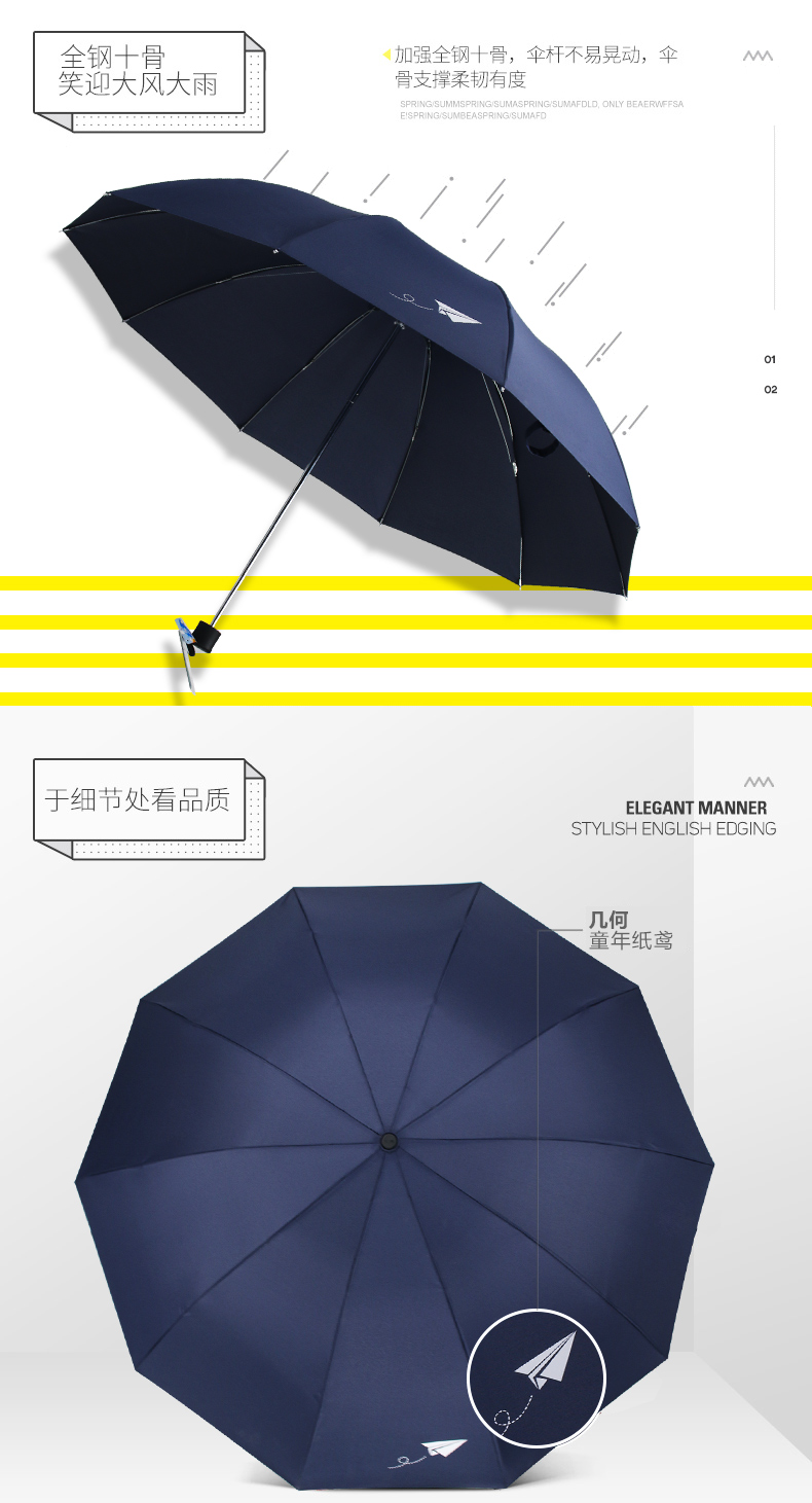天堂伞大号雨伞10骨男女双人加大加固学生简约三折叠手动两用定制印刷LOGO广告伞33678E童年记忆 10骨大号双人-藏青(无黑胶) 伞下直径108CM 自营