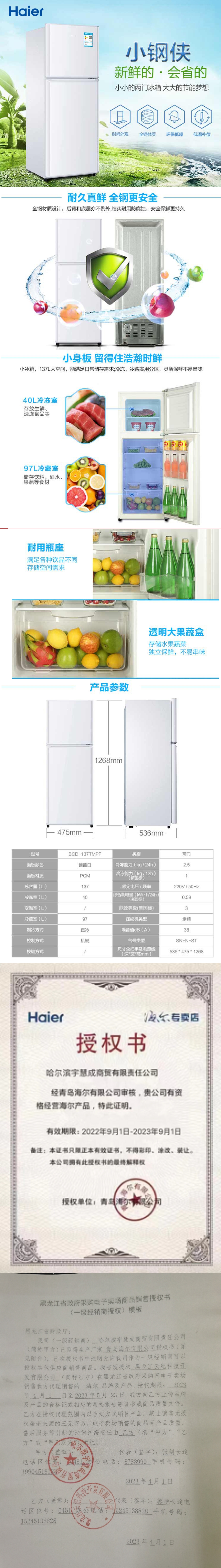 海尔(Haier)137升 两门冰箱双门HIPS高光环保内胆家用小型双门冰箱宿舍租房小巧不占地方BCD-137TMPF 自营