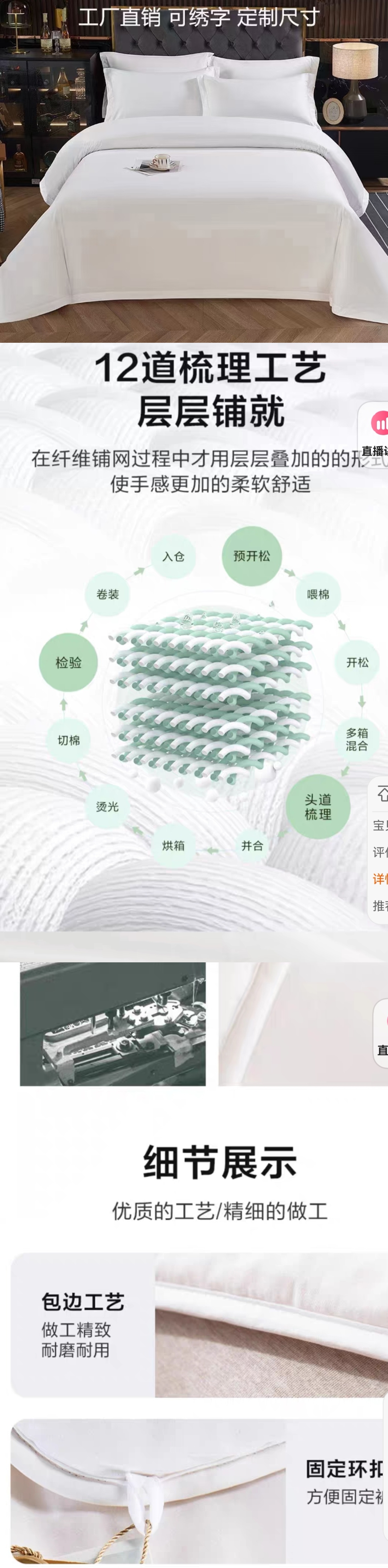 床上装具 6件套(棉被1条 棉褥1条 枕芯2个 床单1条 被罩1条 枕套2个 自营