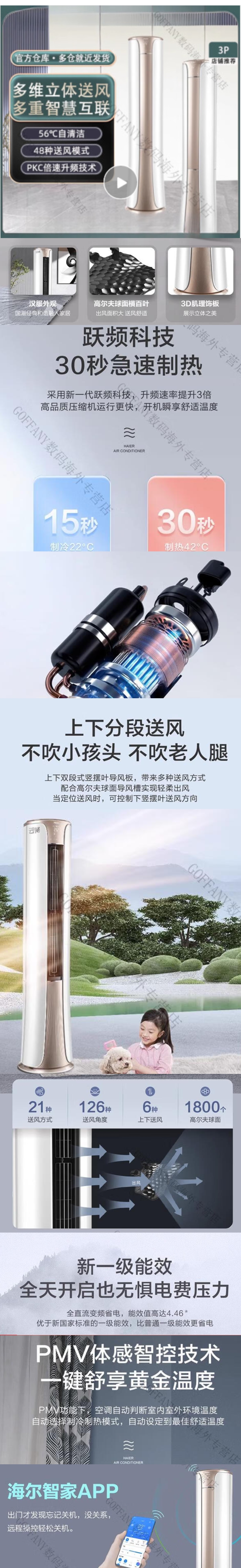 海尔空调3匹 型号:KFR-72W/81@U1-Ht 单位:台 自营