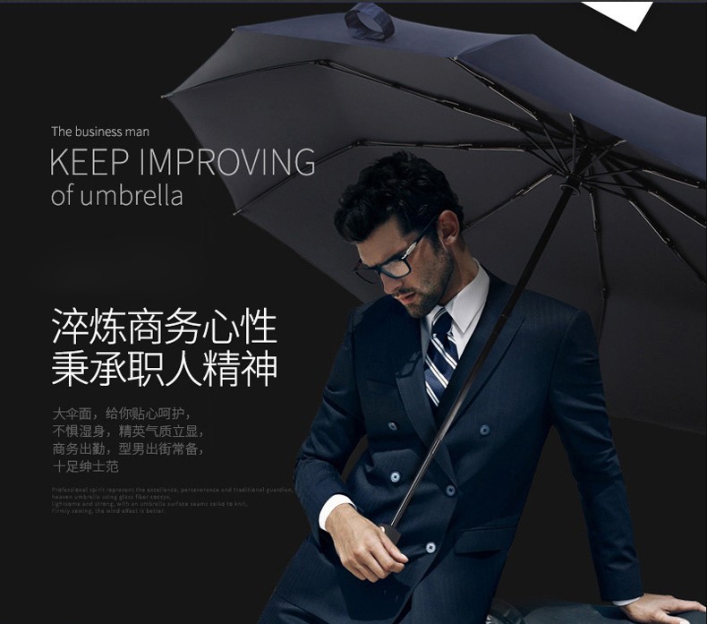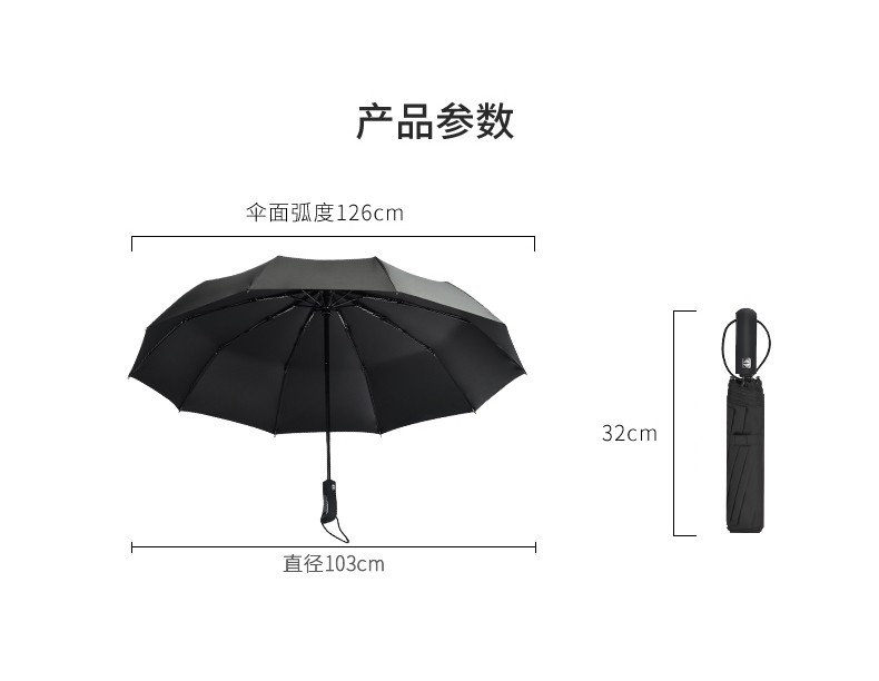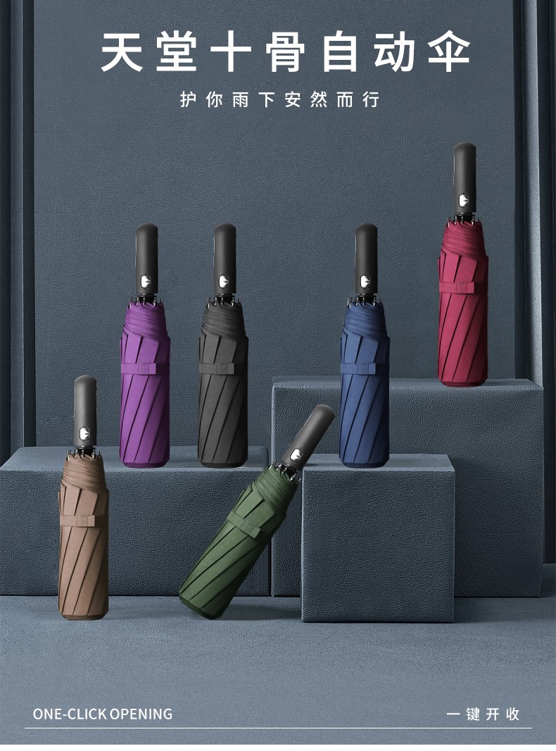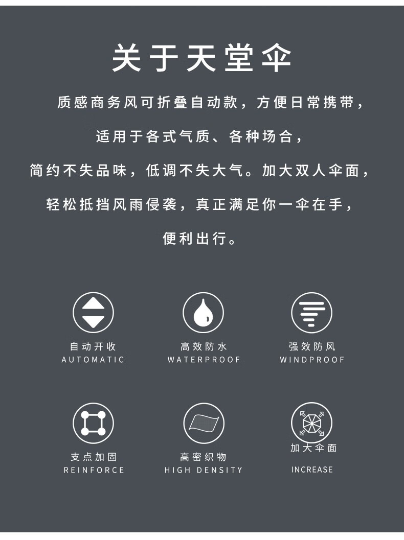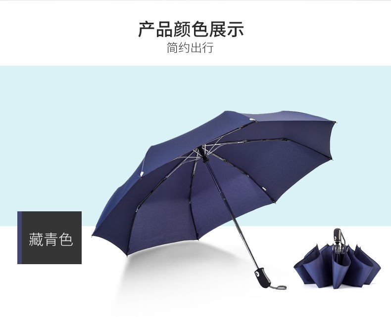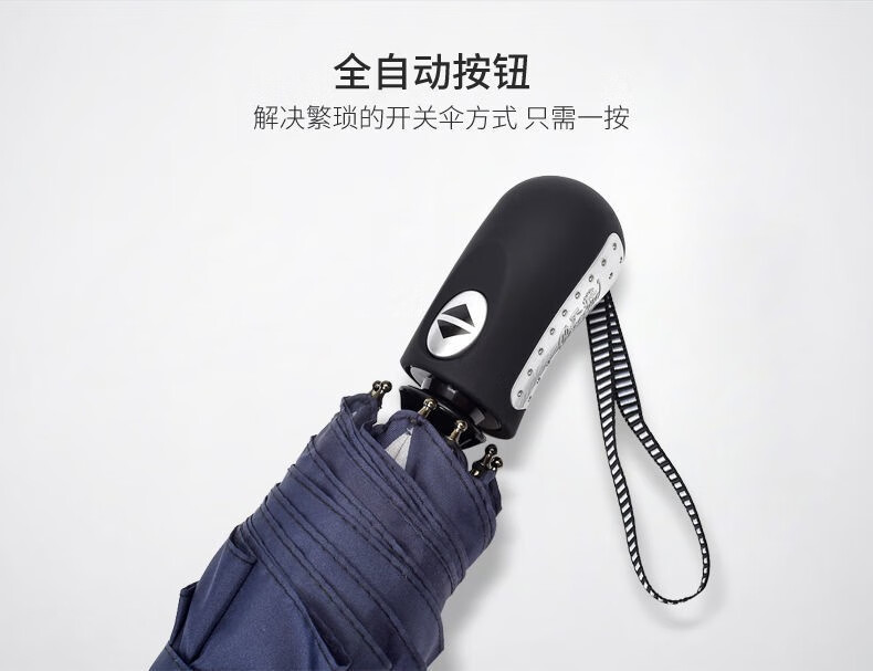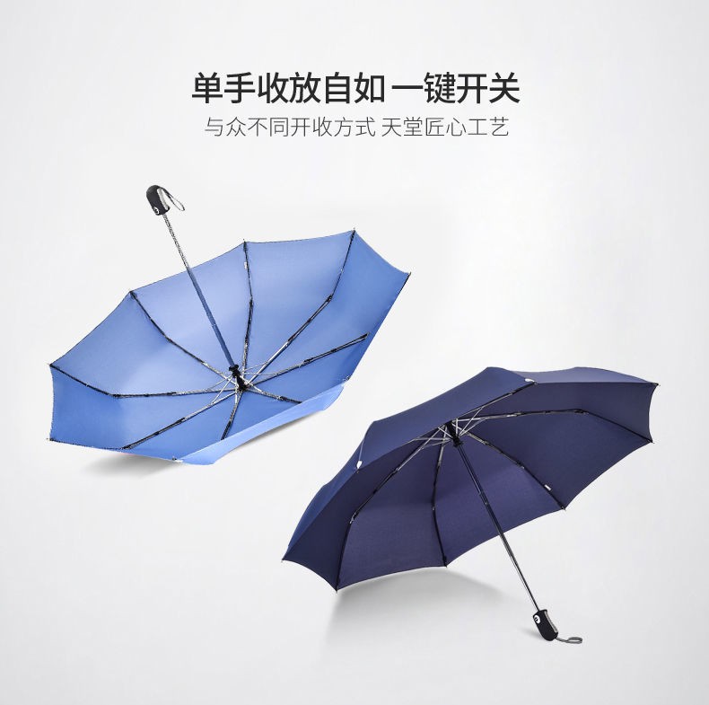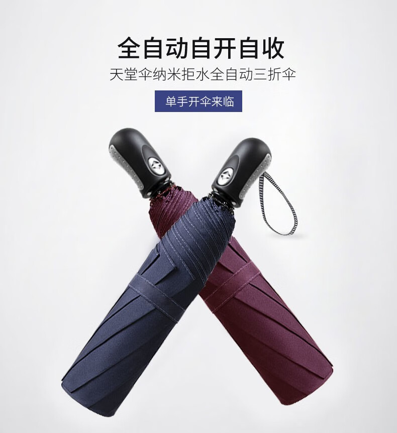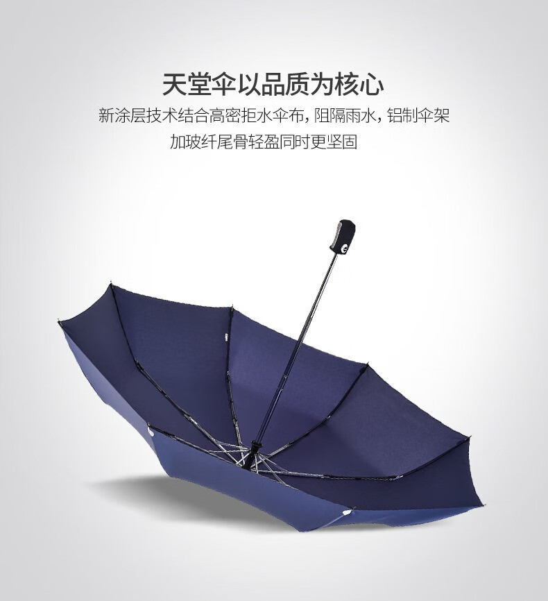 天堂伞全自动雨伞男女大号双人三折叠开收加固防风学生晴雨伞两用 藏青色(八股全自动)) 自营
