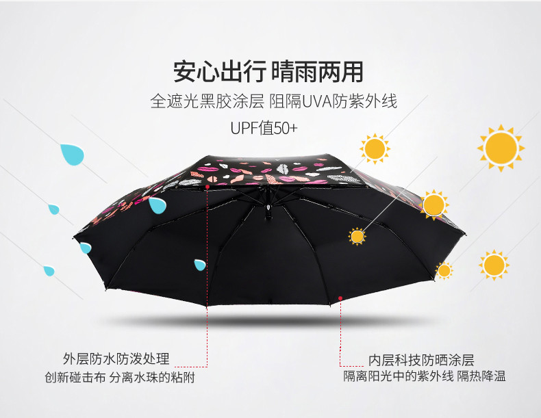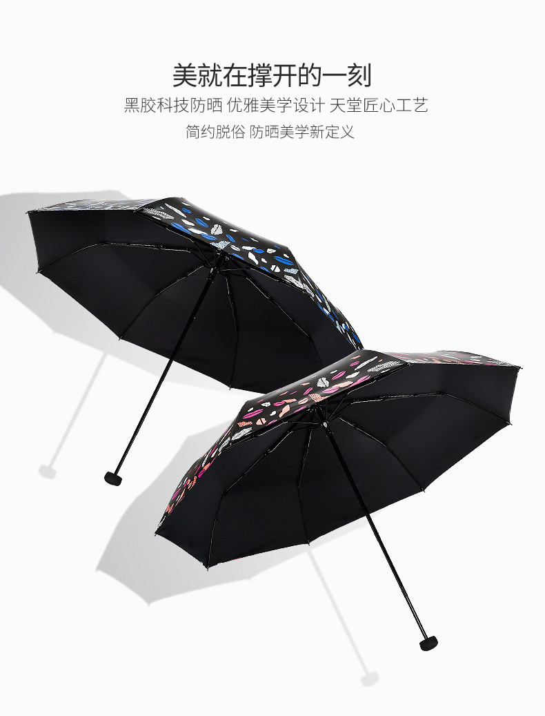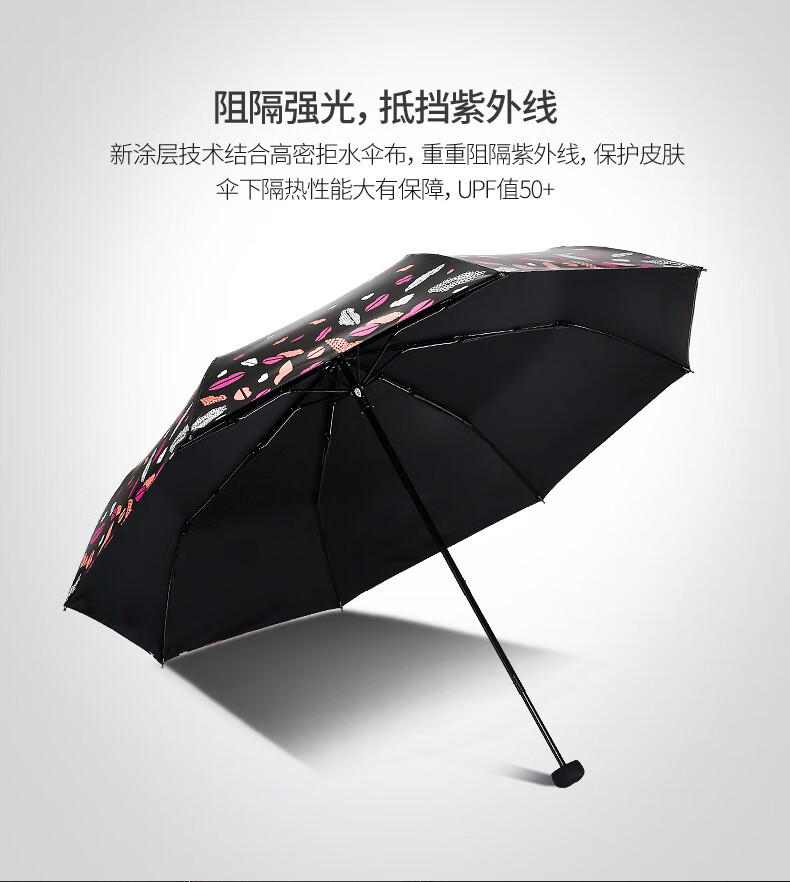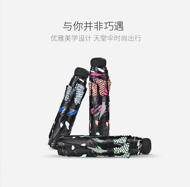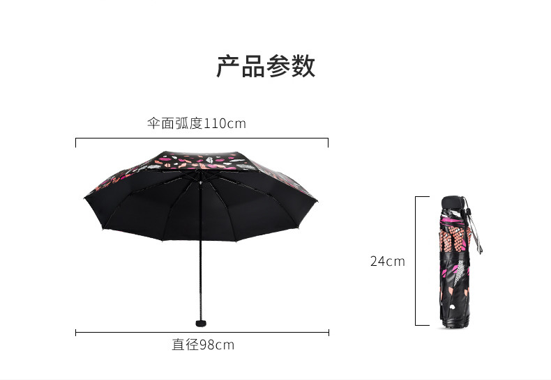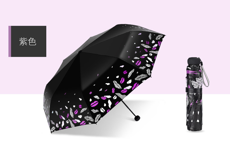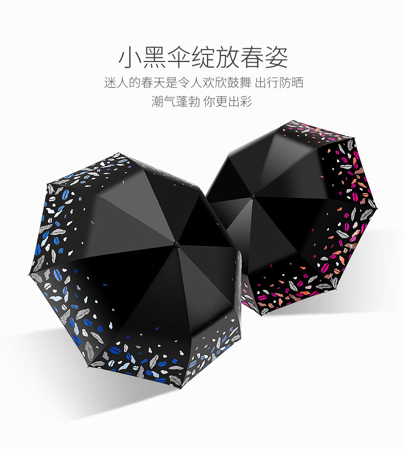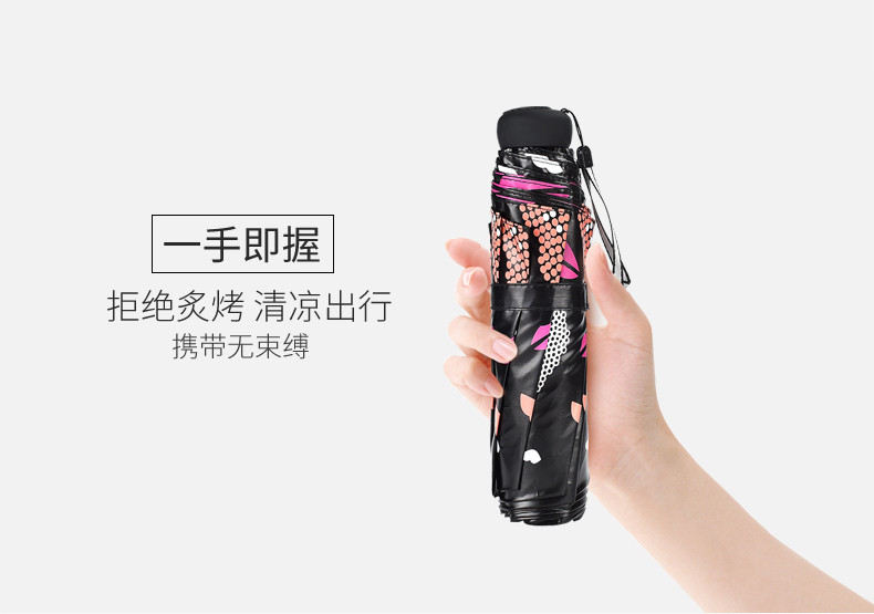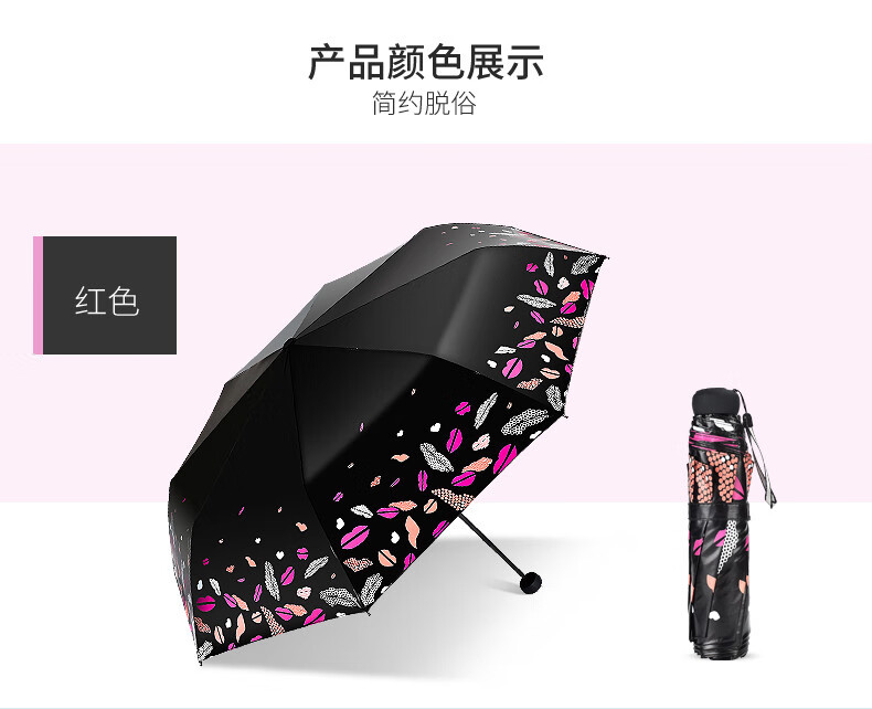 天堂伞雨伞女小清新复古太阳伞防晒防紫外线遮阳伞黑胶晴雨伞两用 玫红色(热情小黑伞) 自营