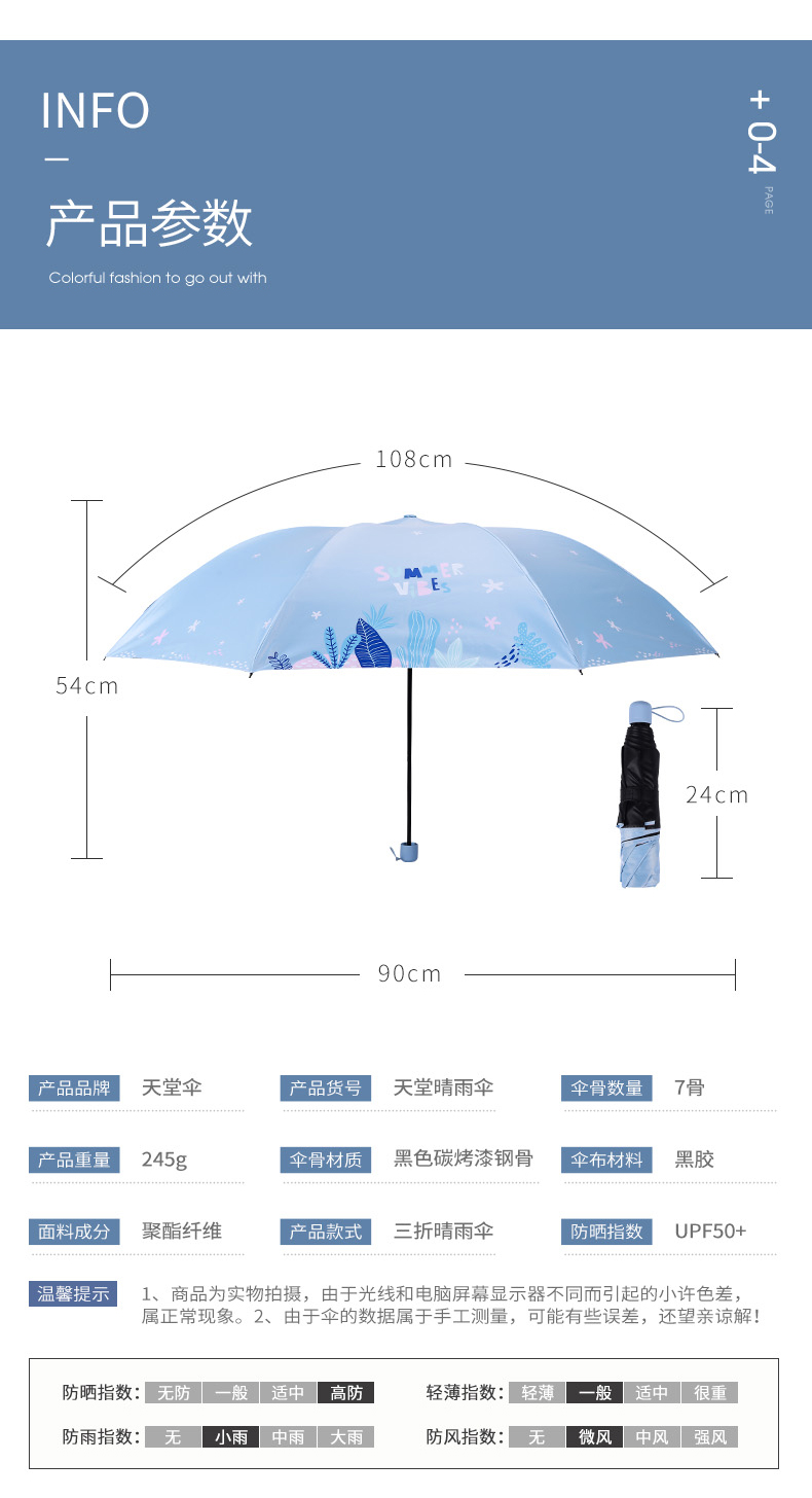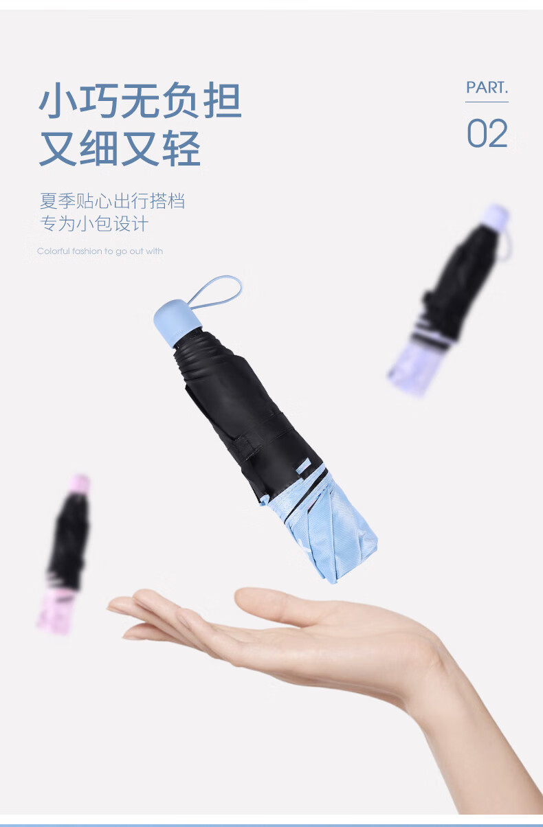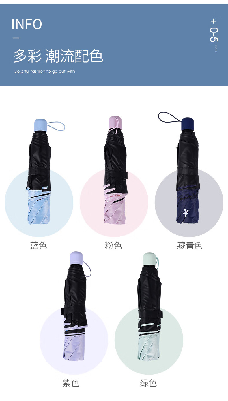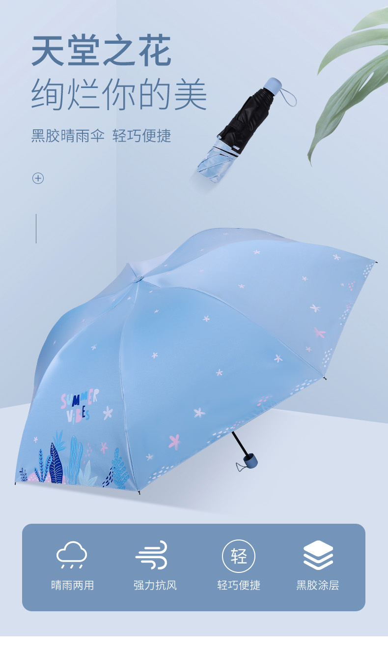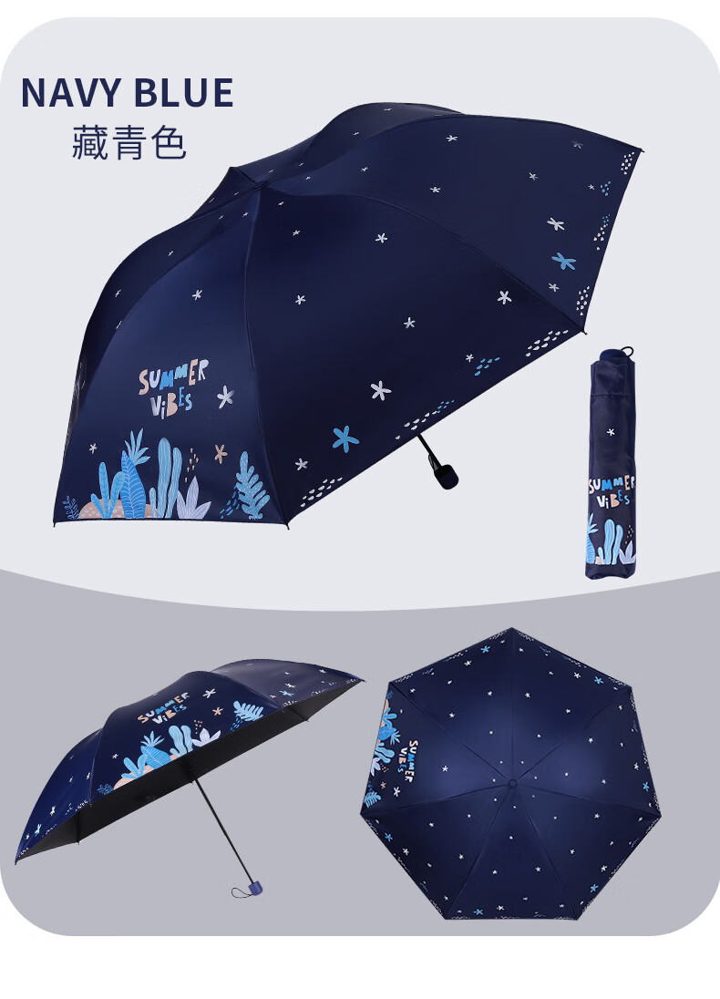 天堂伞超轻细杆迷你防晒防晴雨两用伞便携铅笔伞小把遮阳伞 深蓝色(藏青)