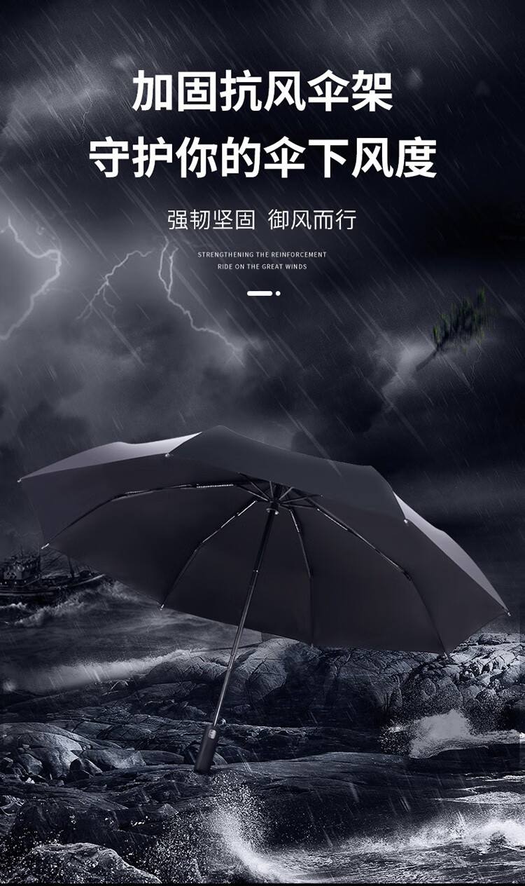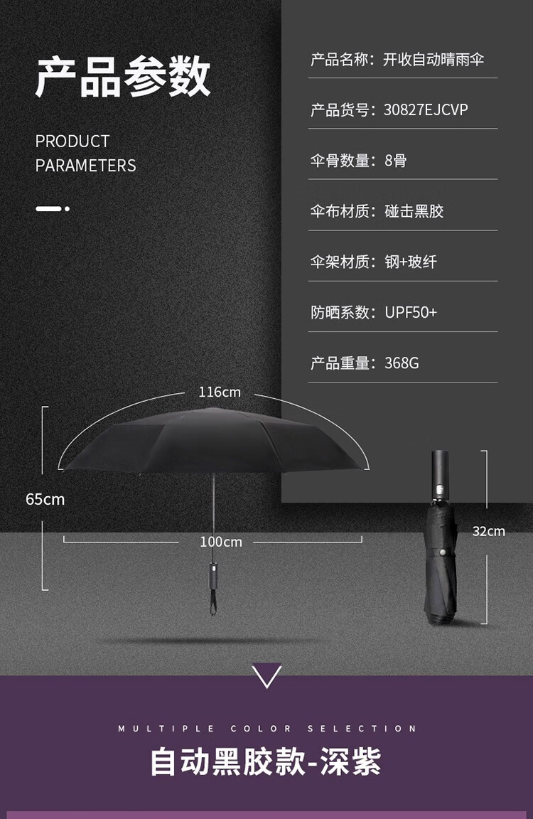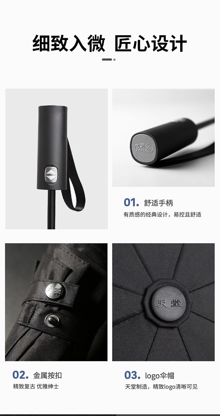 天堂伞奢华商务全自动防晒防紫外线遮阳伞加大晴雨两用伞雨伞太阳伞男女 黑色