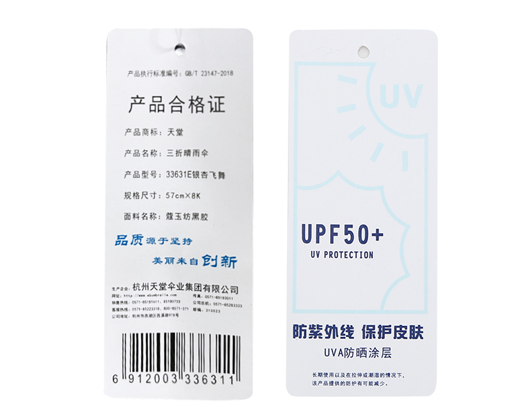 天堂伞 雨伞黑胶防晒防紫外线太阳伞遮阳晴雨伞男女 米黄 57CM*8骨