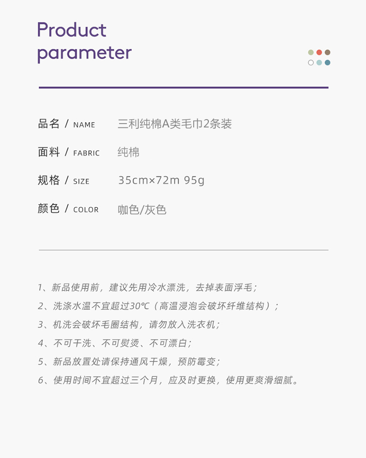 三利新疆长绒棉毛巾 纯棉A类洗脸毛巾2条装 柔软吸水洁面巾 35*72cm 咖/灰 自营