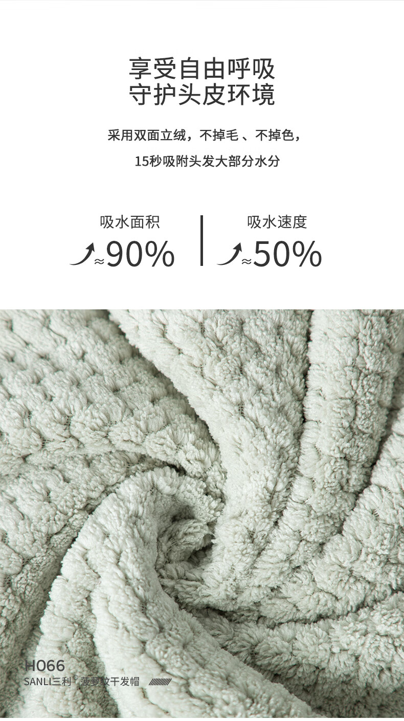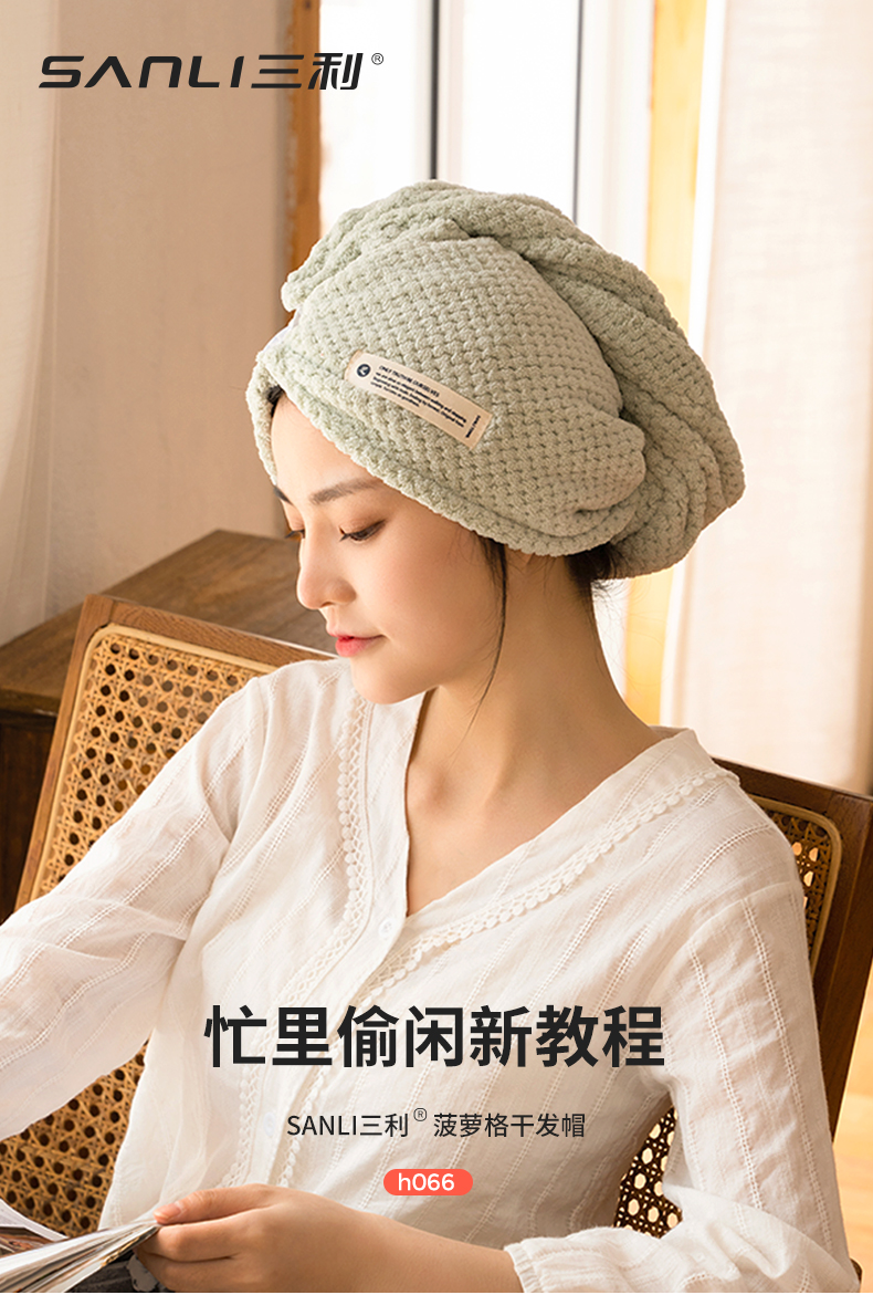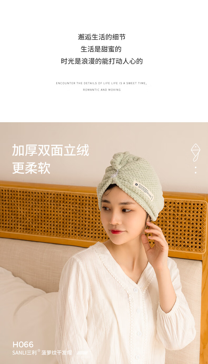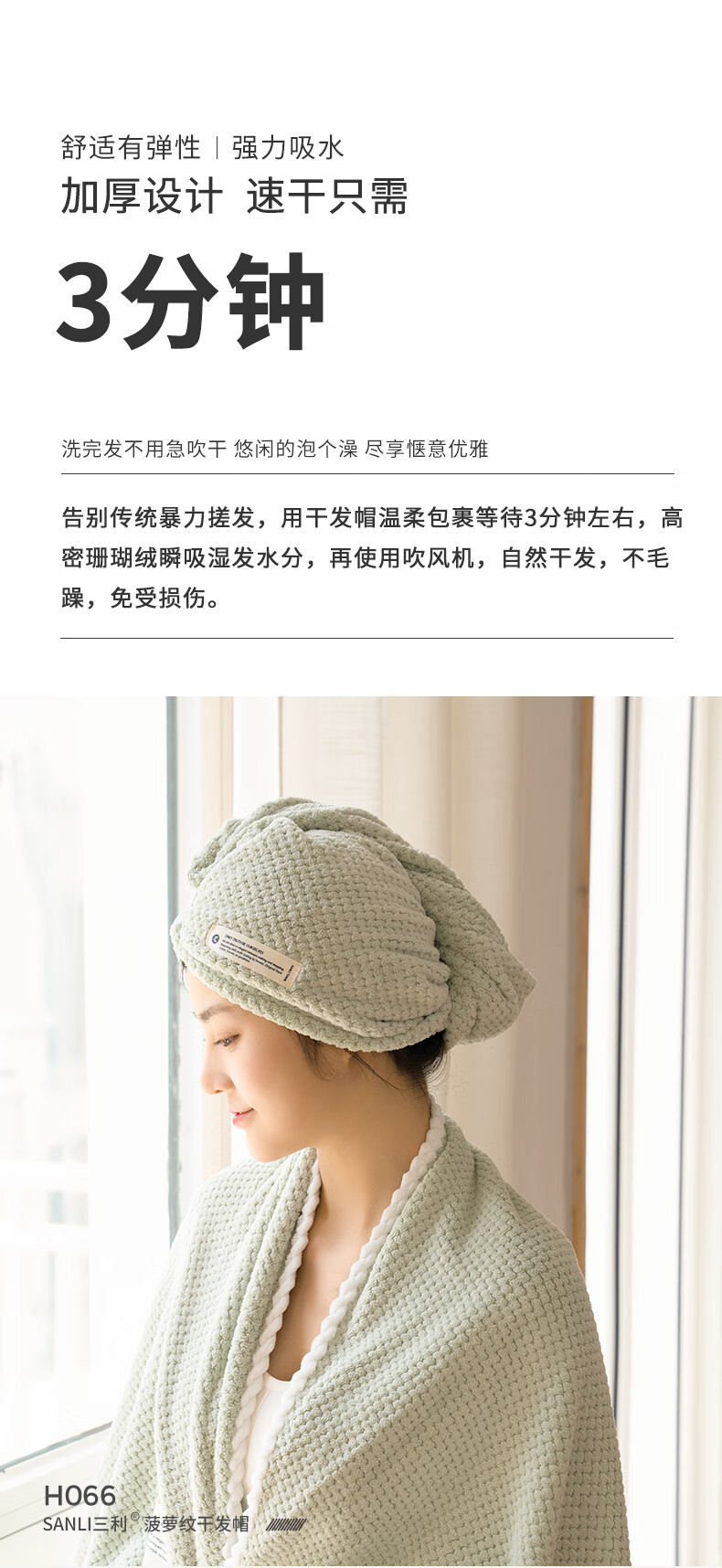三利干发帽A类柔软强吸水速干便携式包头毛巾 25*65cm 78G 淡绿色 自营