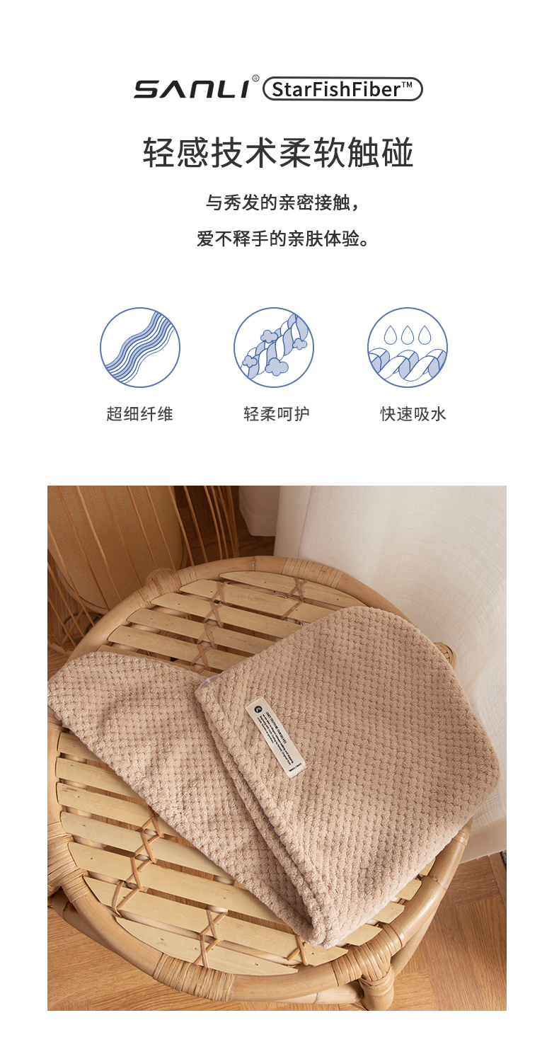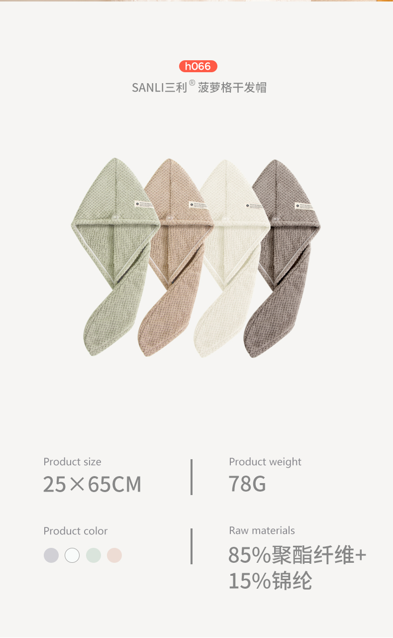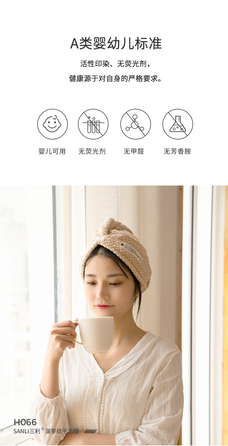 三利干发帽A类柔软强吸水速干便携式包头毛巾 25*65cm 78G 淡绿色 自营