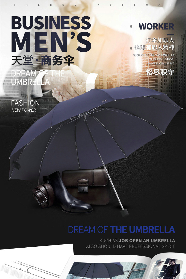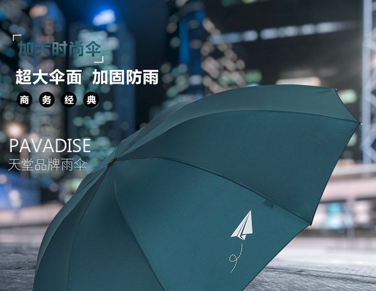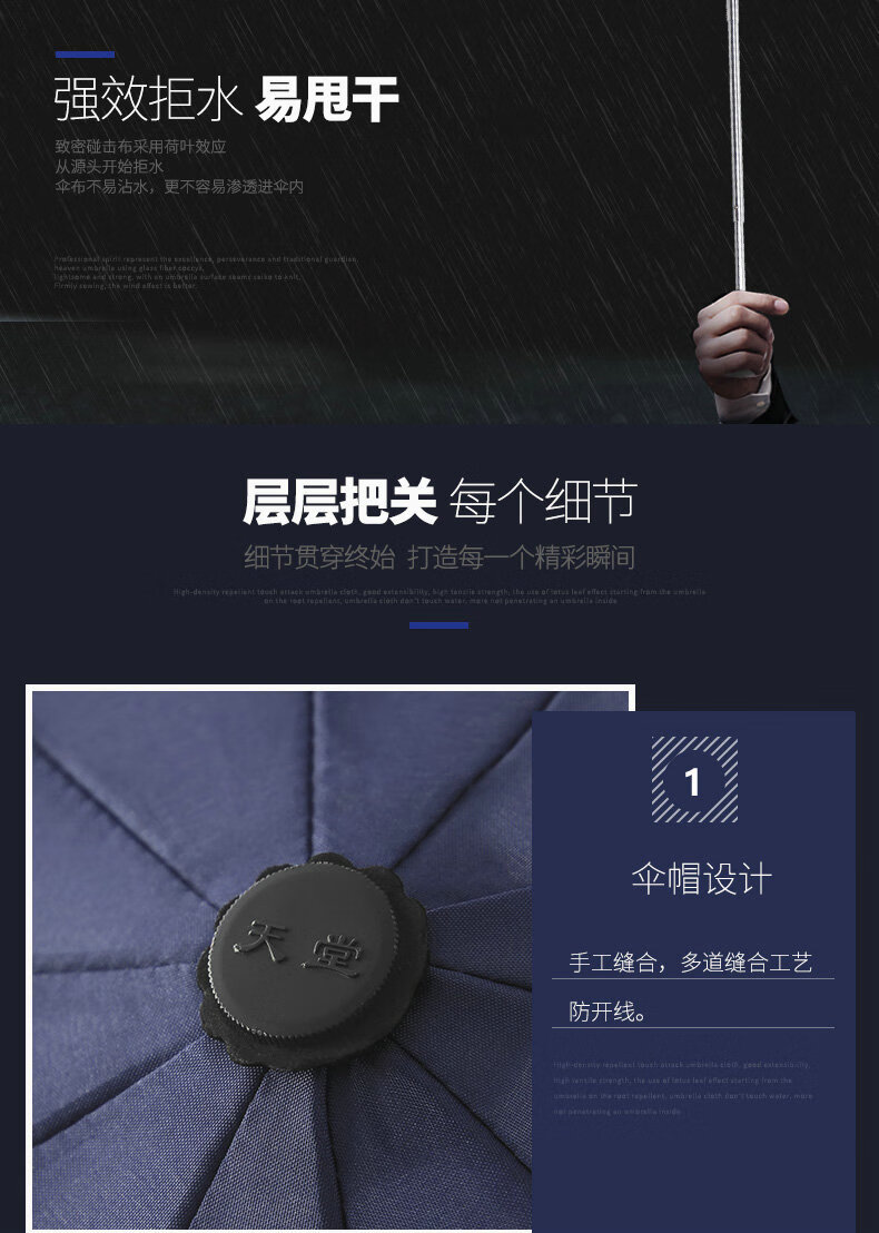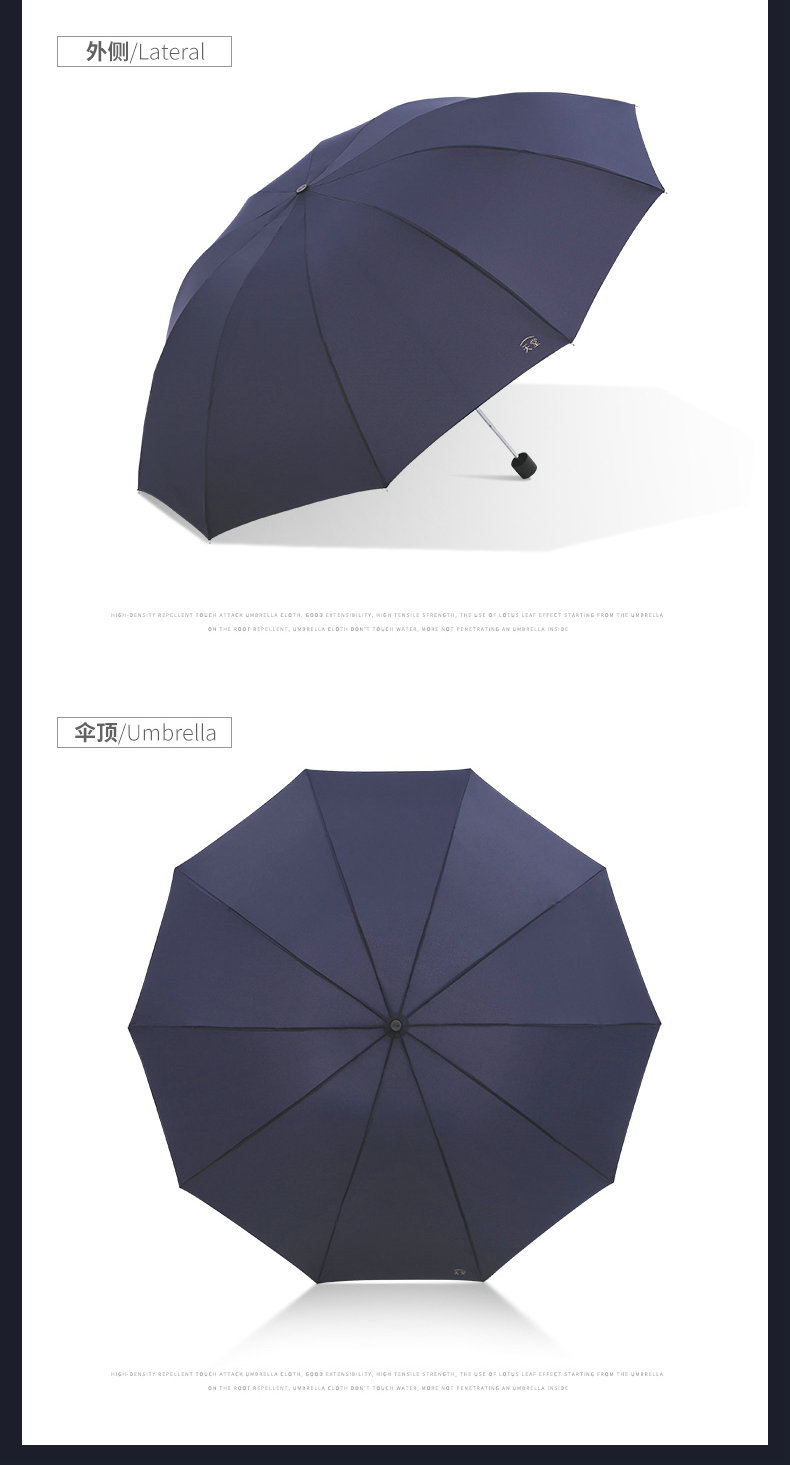 天堂伞十骨加大加固双人雨伞三折叠一甩干强力拒水男女学生防风商务伞定制logo大伞 童年记忆十骨双人雨伞【藏青】 自营