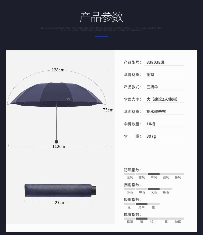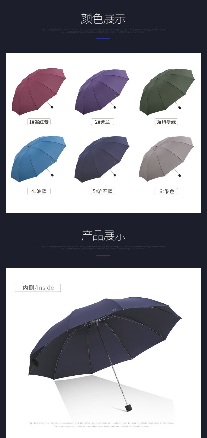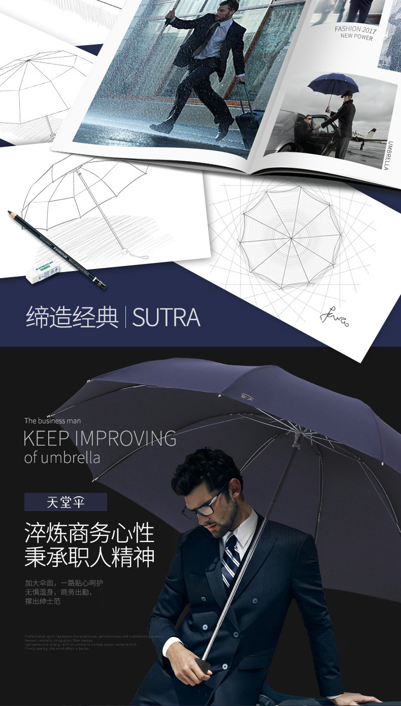 天堂伞十骨加大加固双人雨伞三折叠一甩干强力拒水男女学生防风商务伞定制logo大伞 童年记忆十骨双人雨伞【藏青】 自营