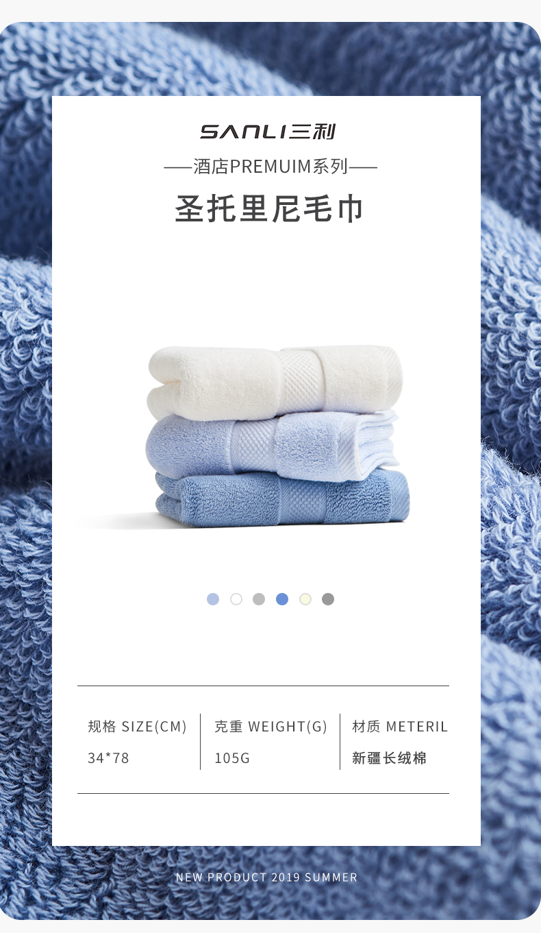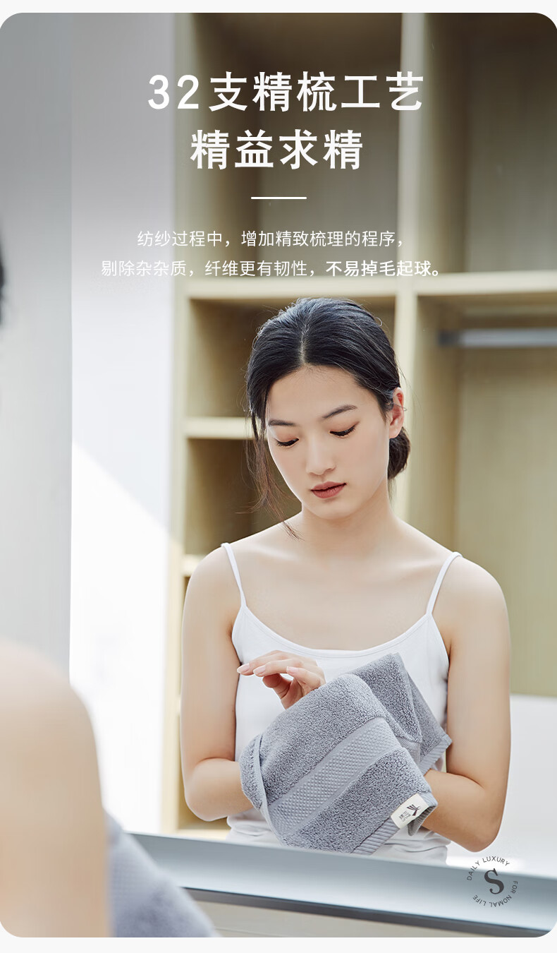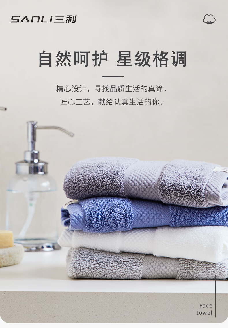 三利毛巾 纯棉A类加厚洗脸面巾 新疆棉花长绒棉柔软强吸水擦脸巾 34*74cm 灰色 105g 自营