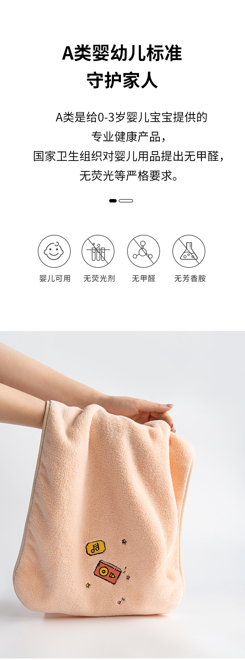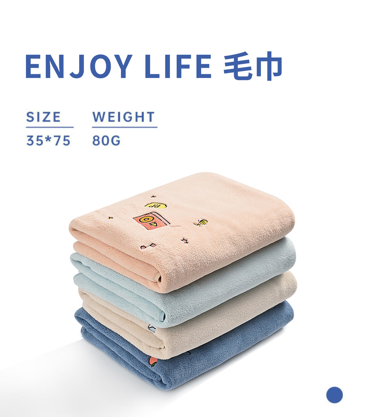 三利刺绣毛巾强吸水A类可爱风居家日用速干大毛巾2条 35*75cm 85G 湖蓝+天蓝 自营