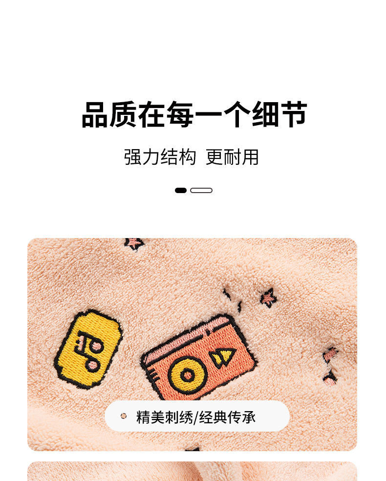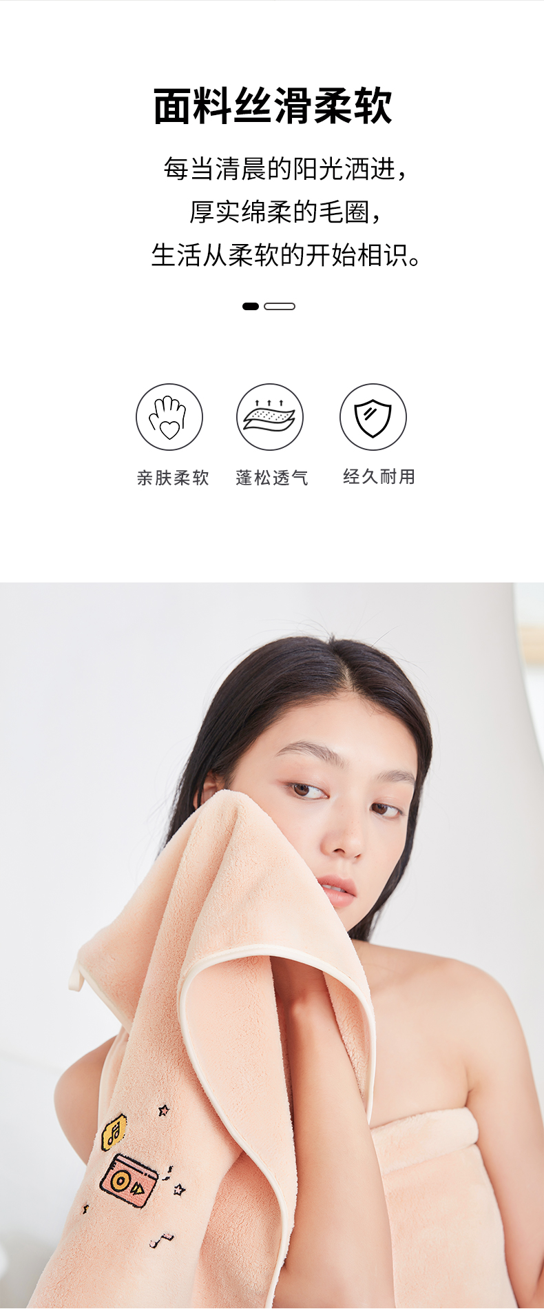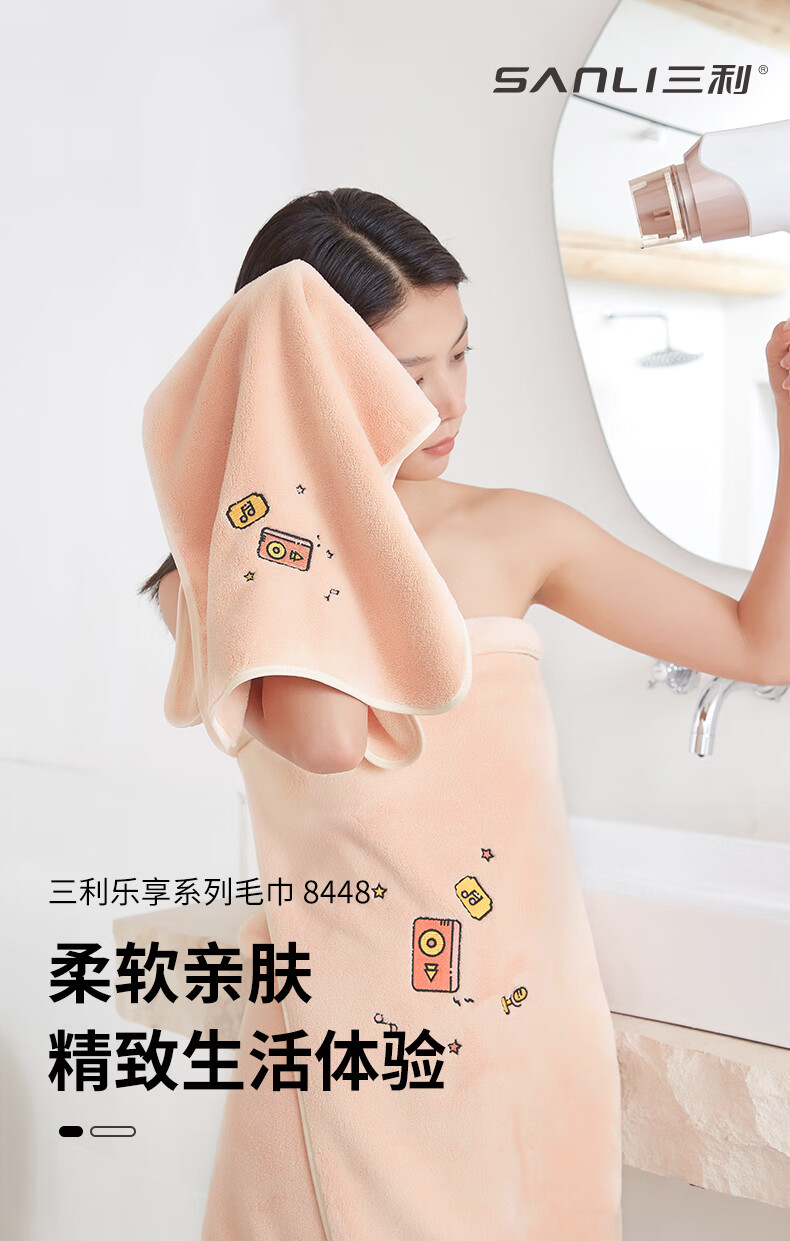 三利刺绣毛巾强吸水A类可爱风居家日用速干大毛巾2条 35*75cm 85G 湖蓝+贝粉 自营