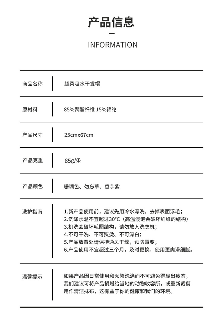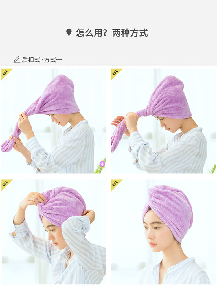 三利 超柔强吸水干发帽 25x67cm 便携式擦头发包头速干毛巾 香芋色 自营