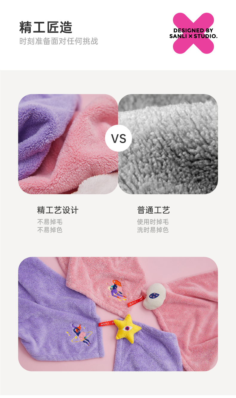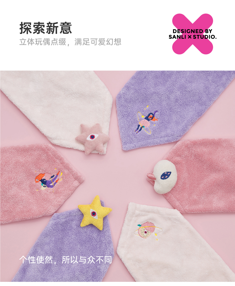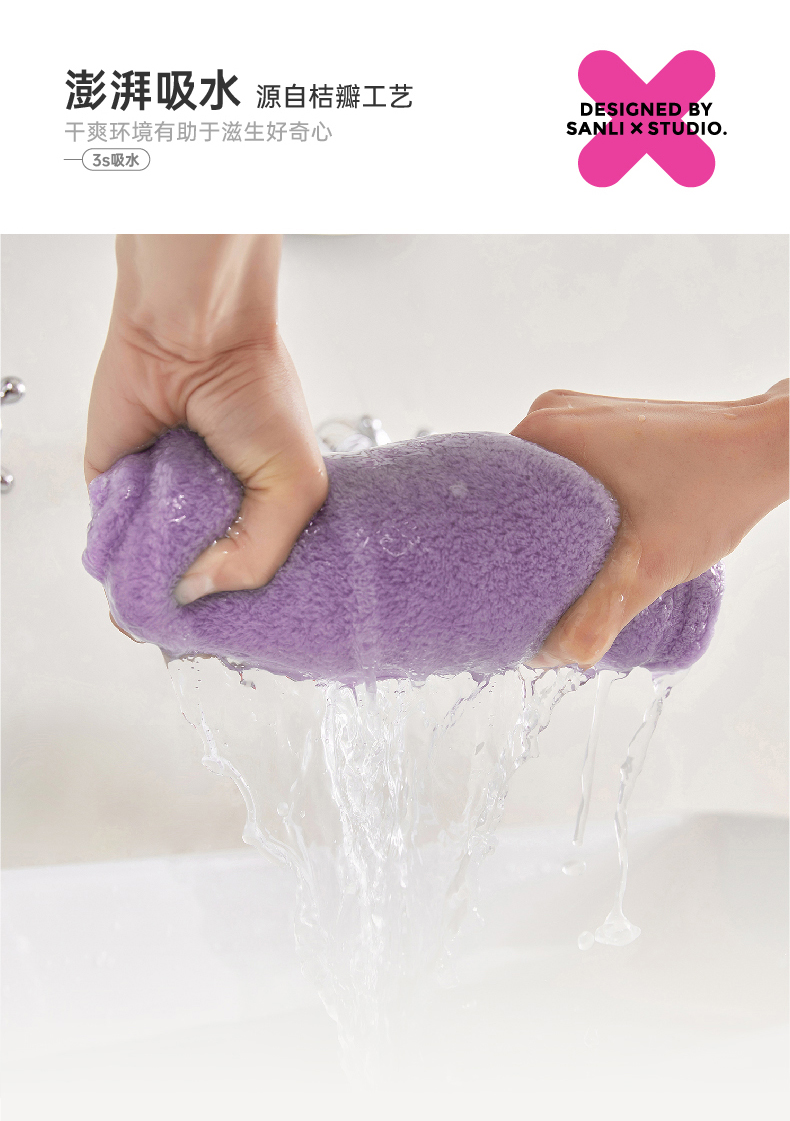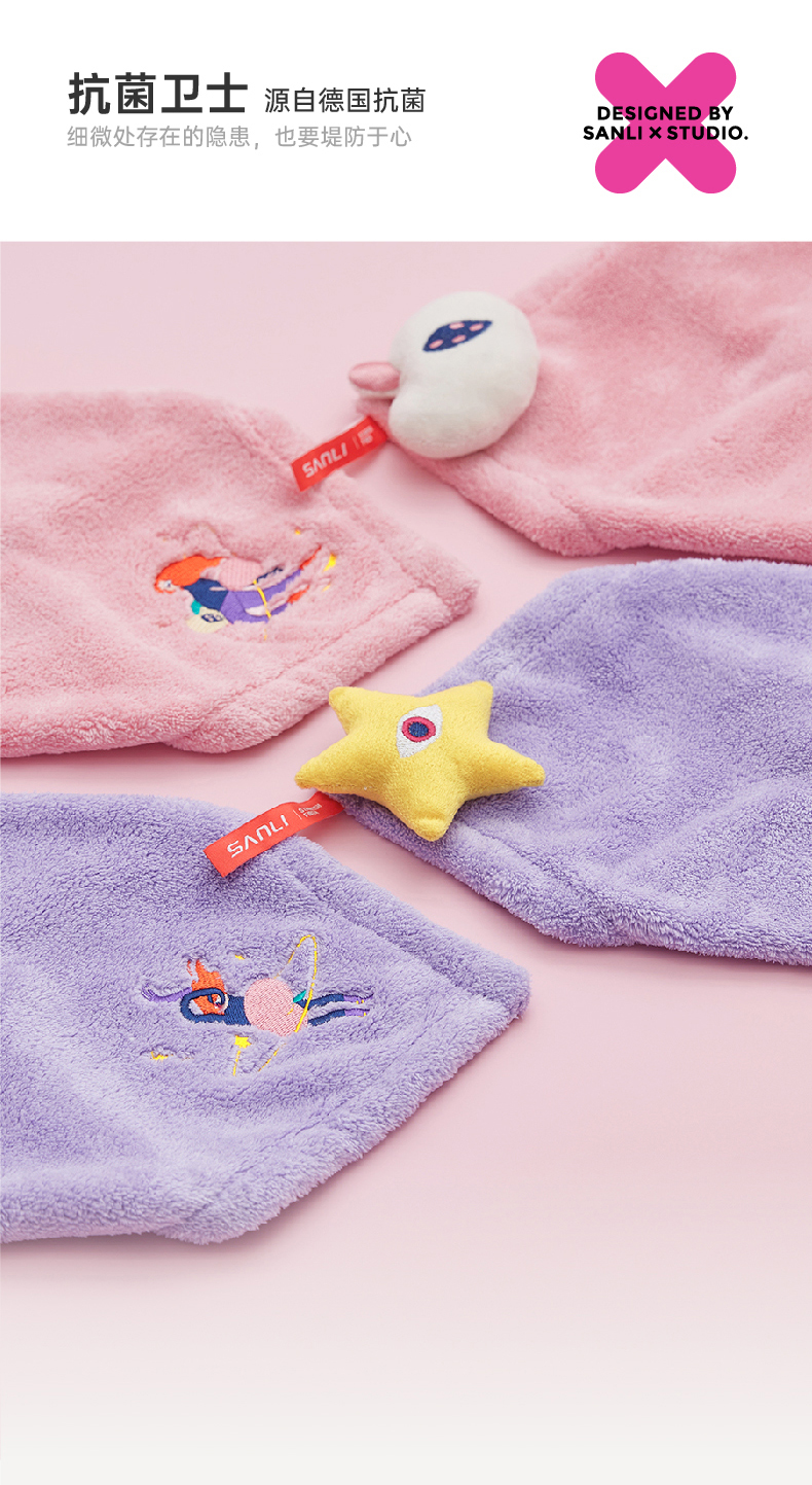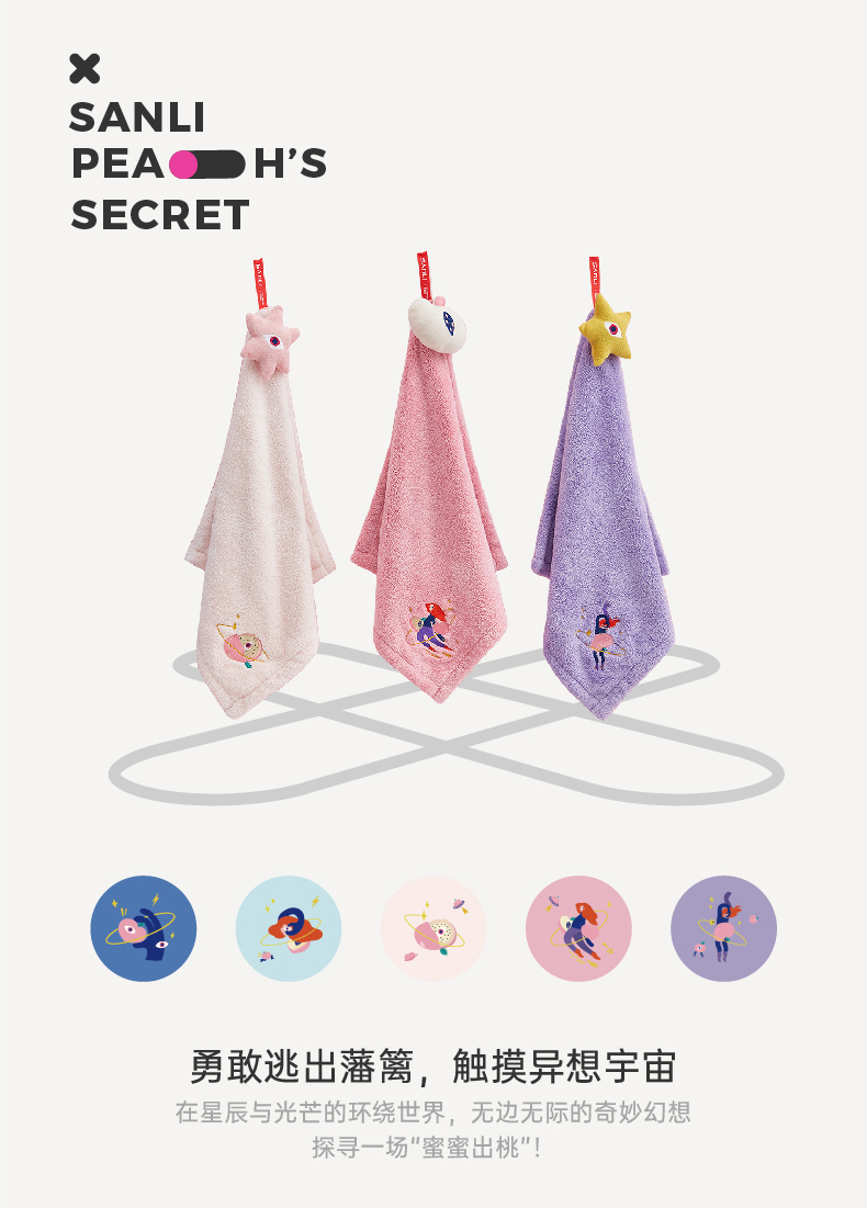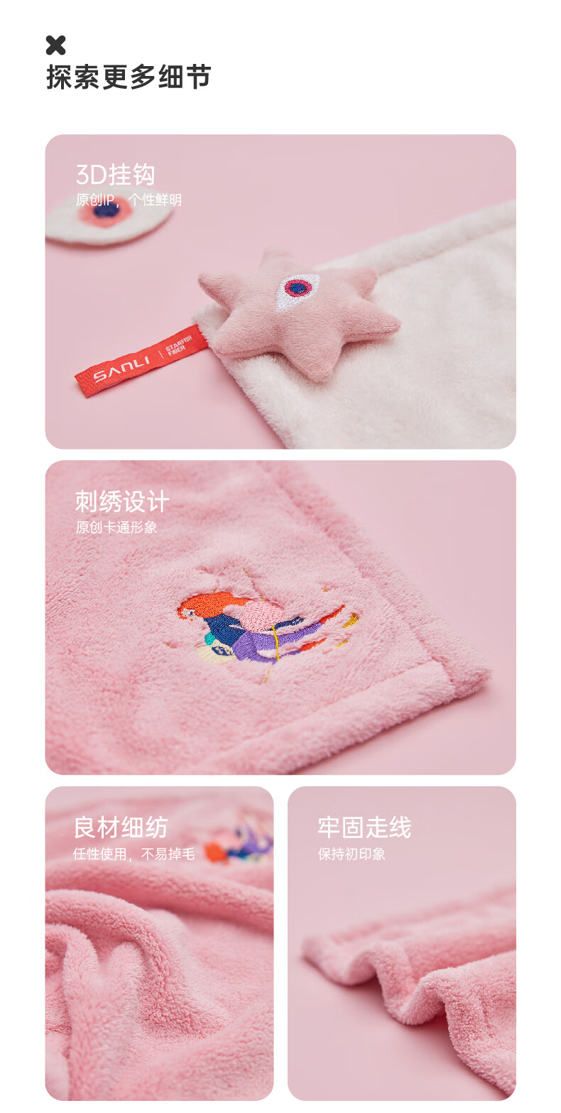 三利擦手毛巾3条装 可爱柔软吸水厨房卫生间居家挂式儿童擦手小毛巾 35*35cm 自营