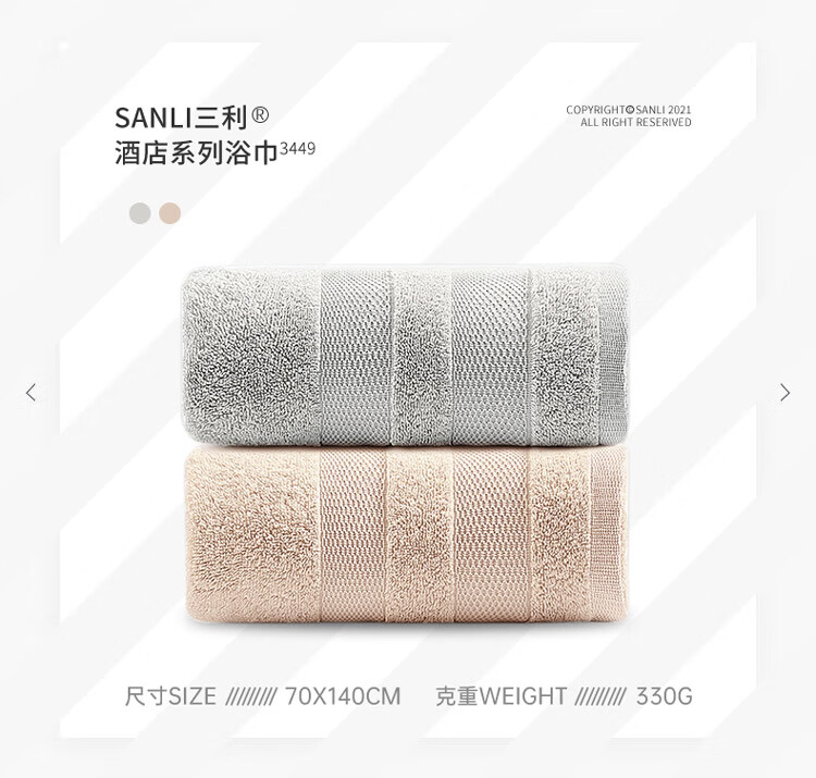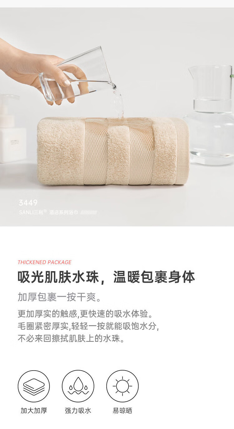 三利浴巾 纯棉柔软吸水男女成人洗澡裹身大毛巾大浴巾 70*140cm 棕色 自营