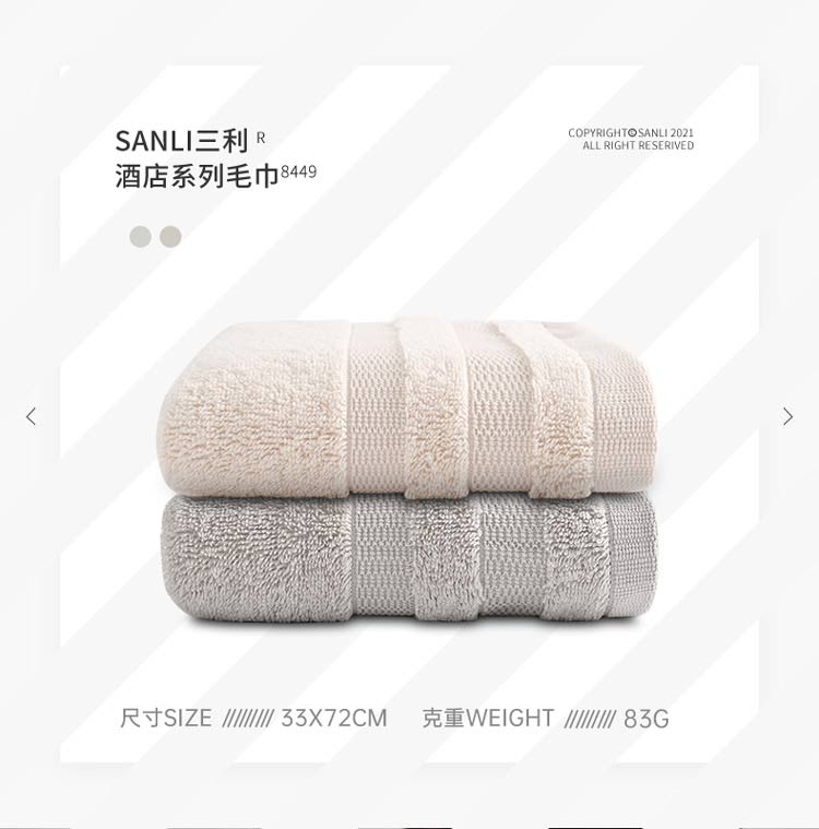 三利毛巾 纯棉吸水洗脸毛巾A类面巾2条装 72*33cm 灰色/棕色 自营
