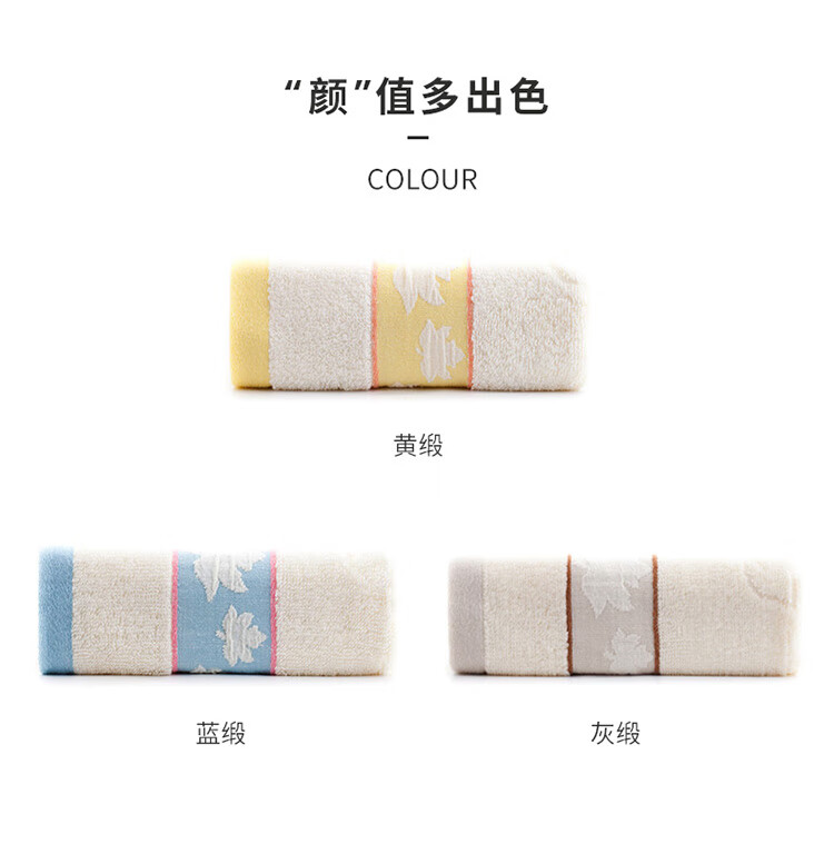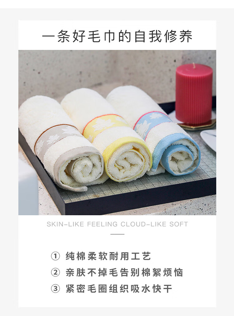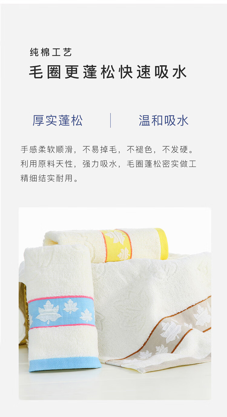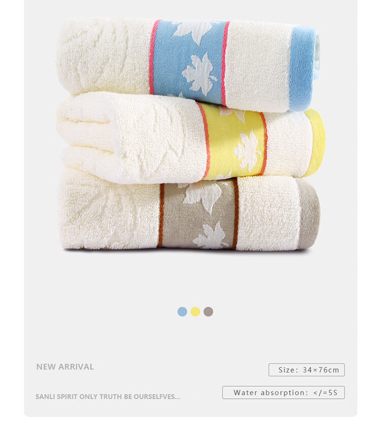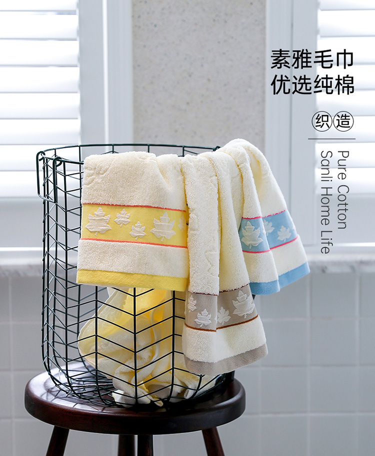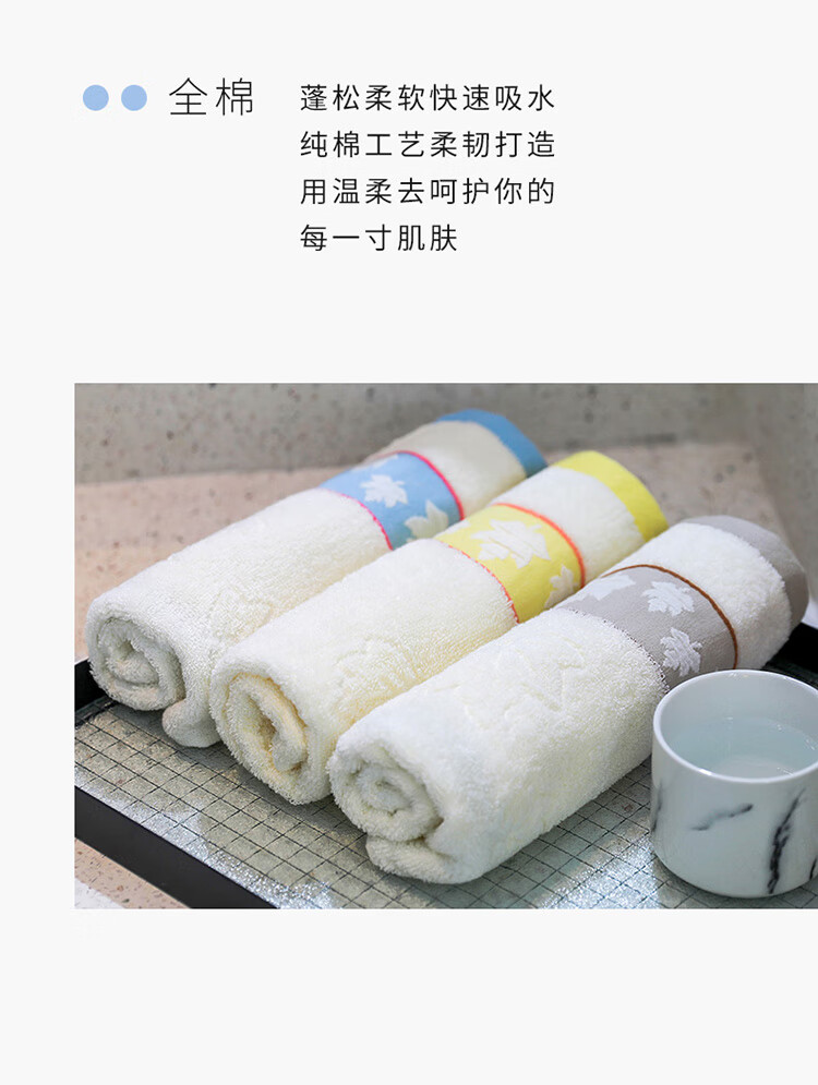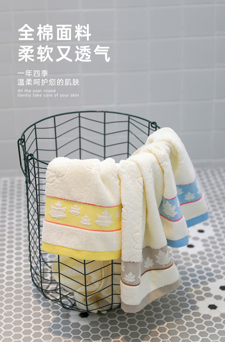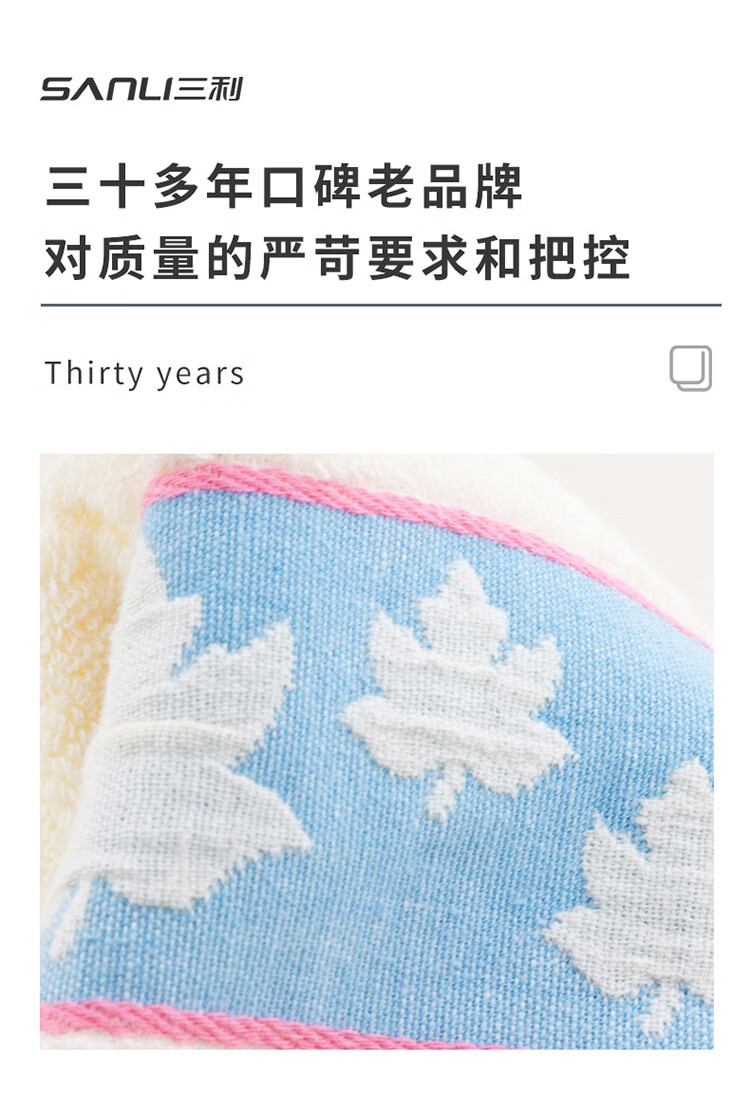 三利 毛巾家纺 纯棉枫叶毛巾 洗脸面巾 34x76cm 蓝缎 自营