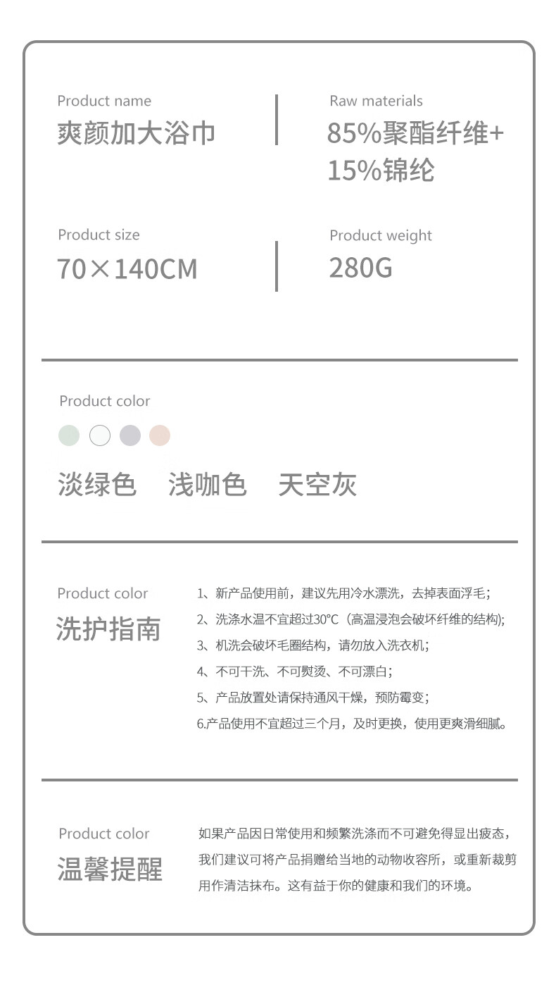 三利浴巾A类吸水速干成人大浴巾男女通用 70*140cm 285G 天空灰 自营