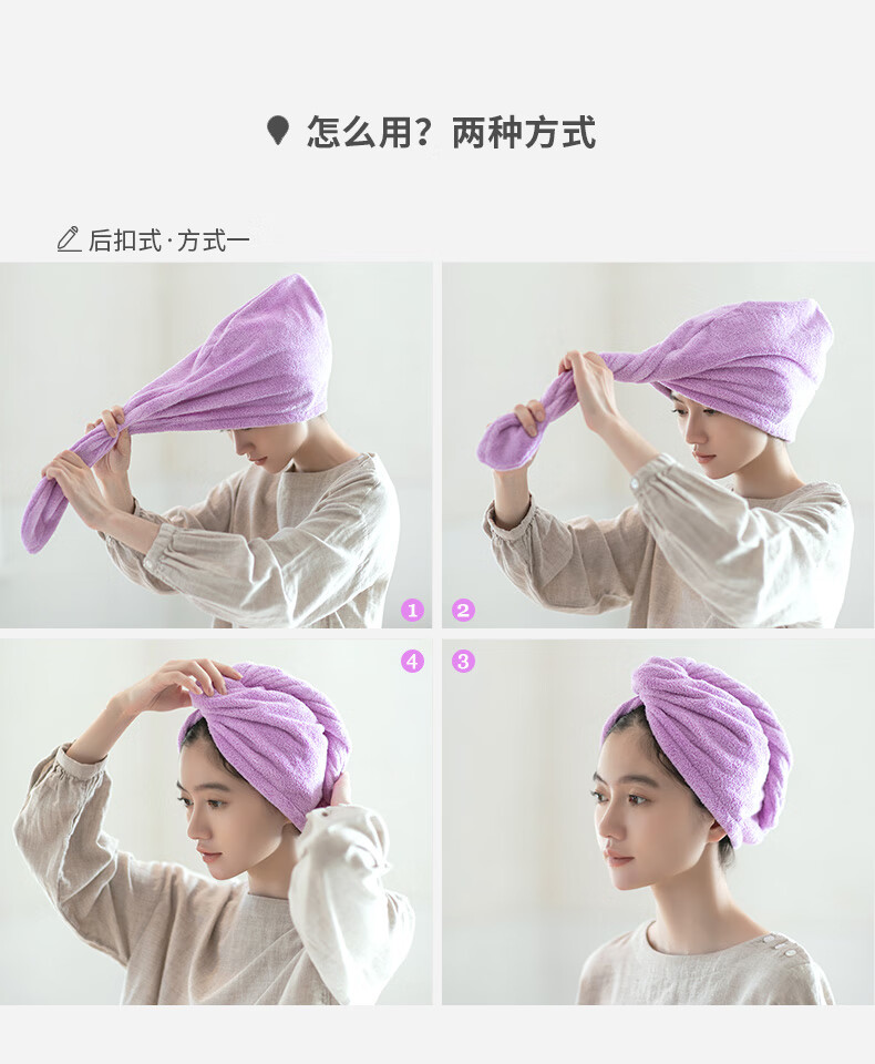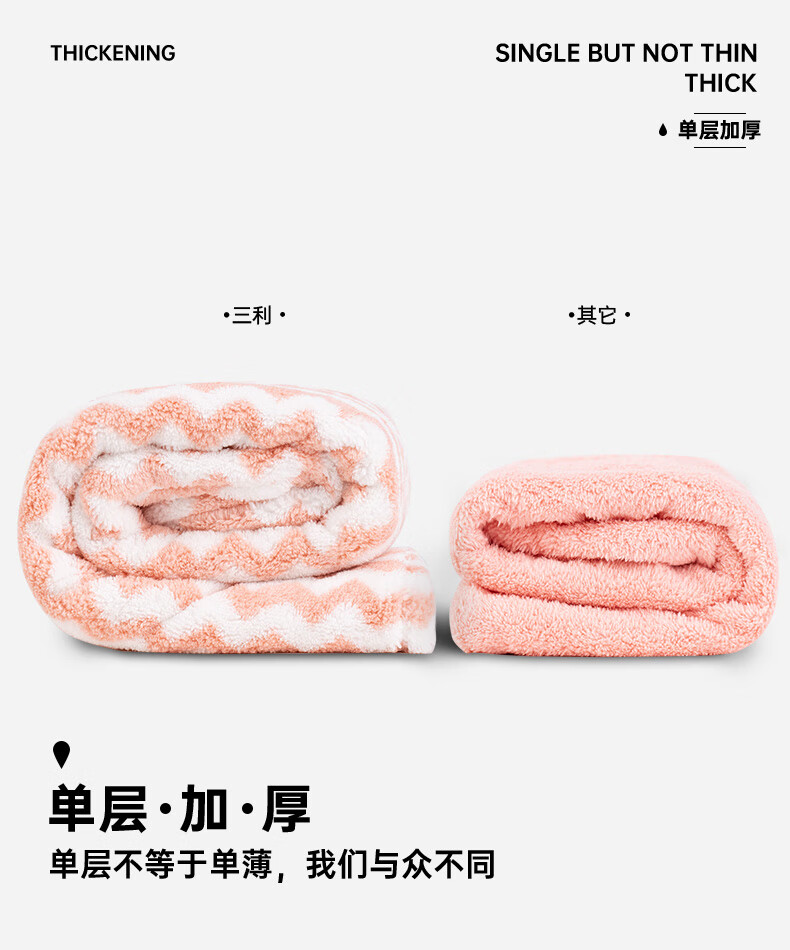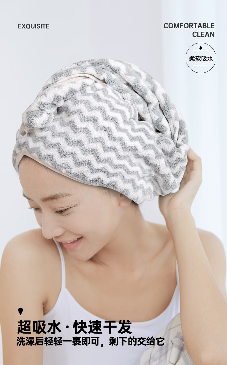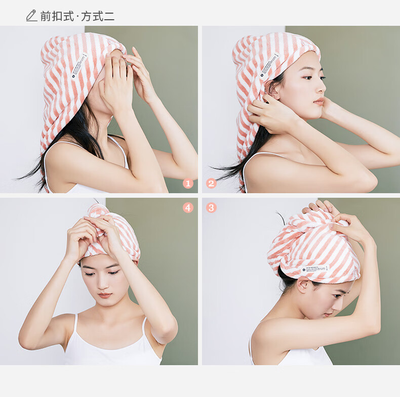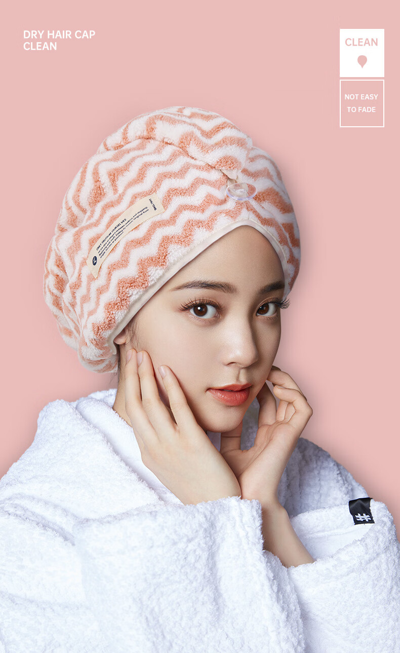 三利干发帽女 A类亲肤柔软吸水速干毛巾包头巾擦头巾浴帽可爱长发干发巾 珊瑚粉 自营