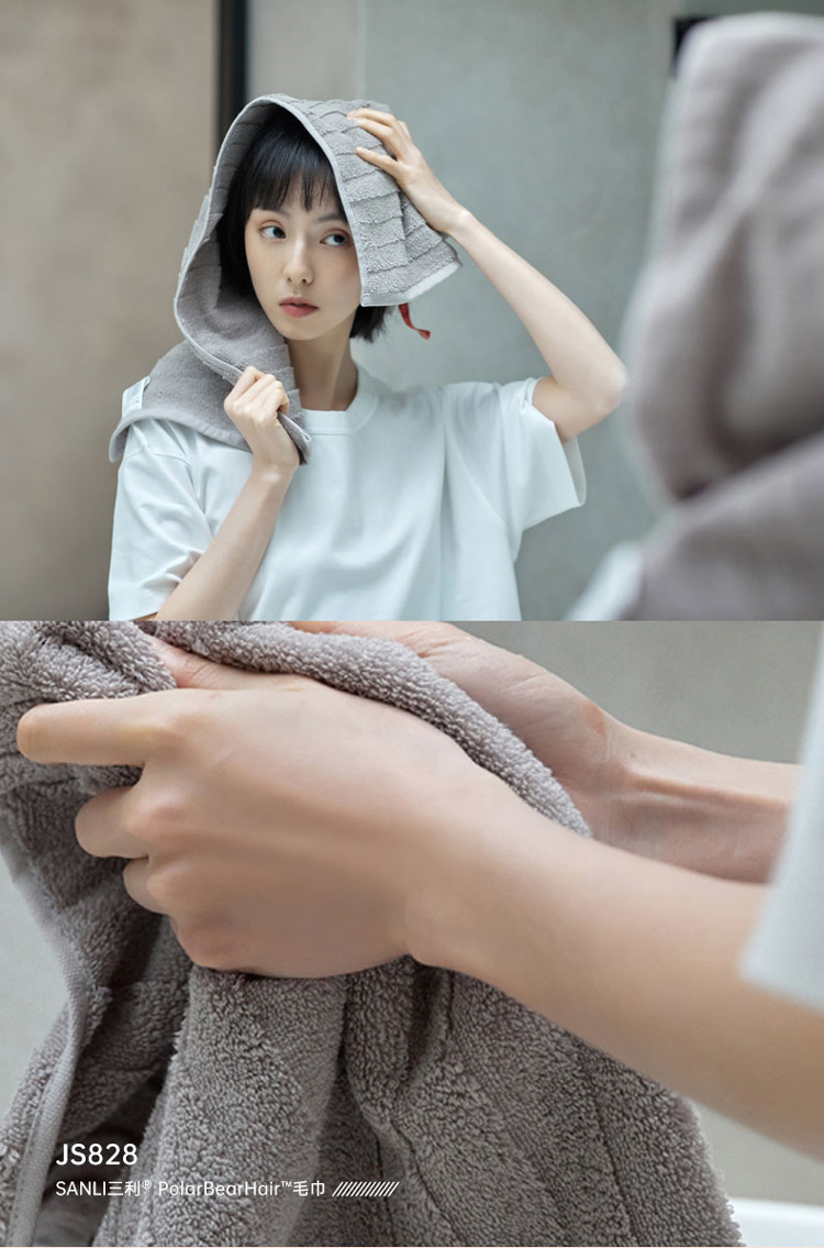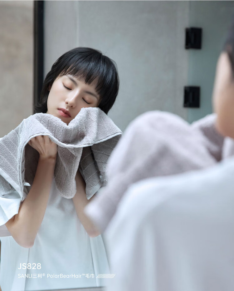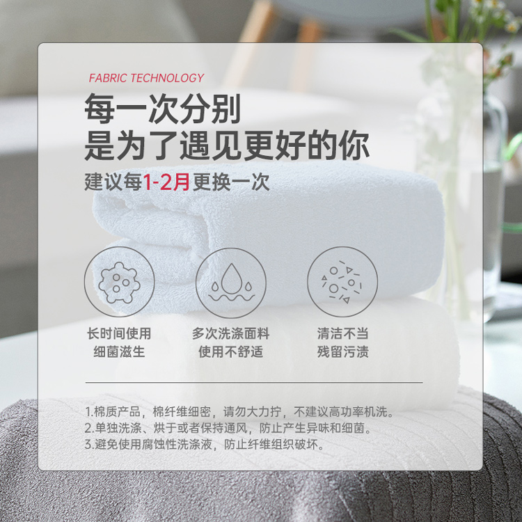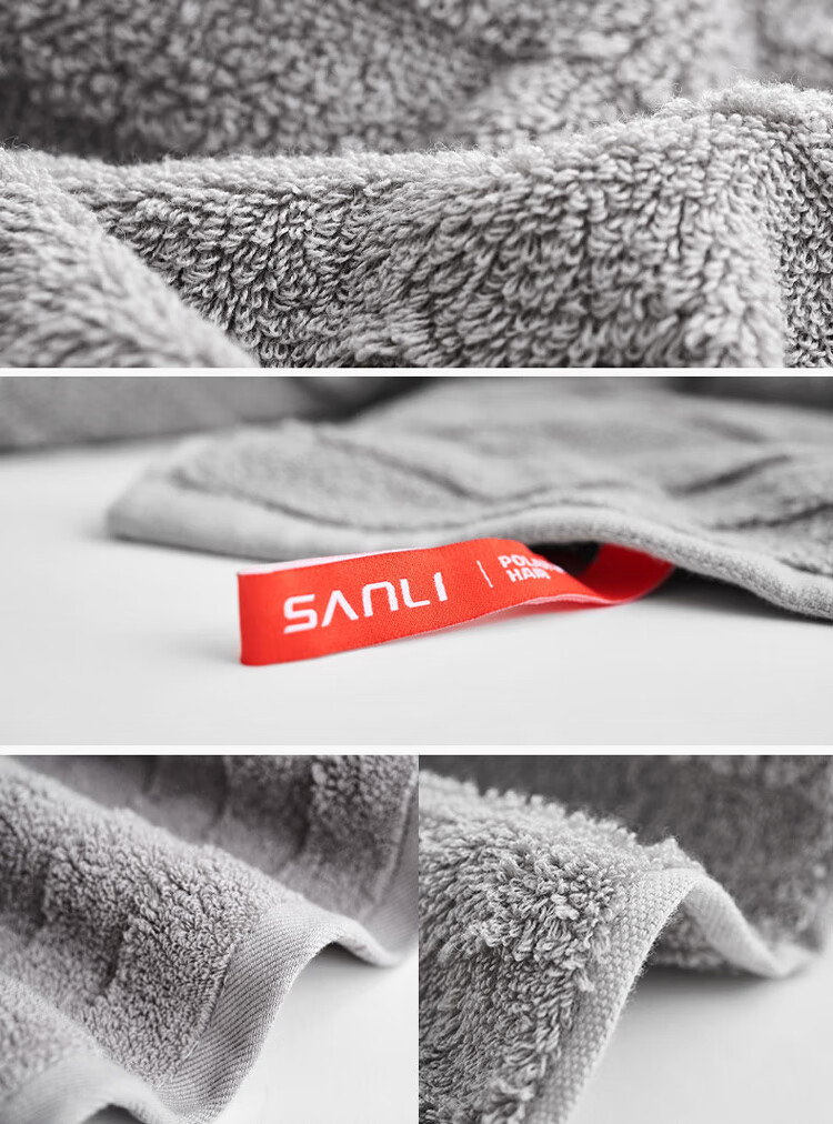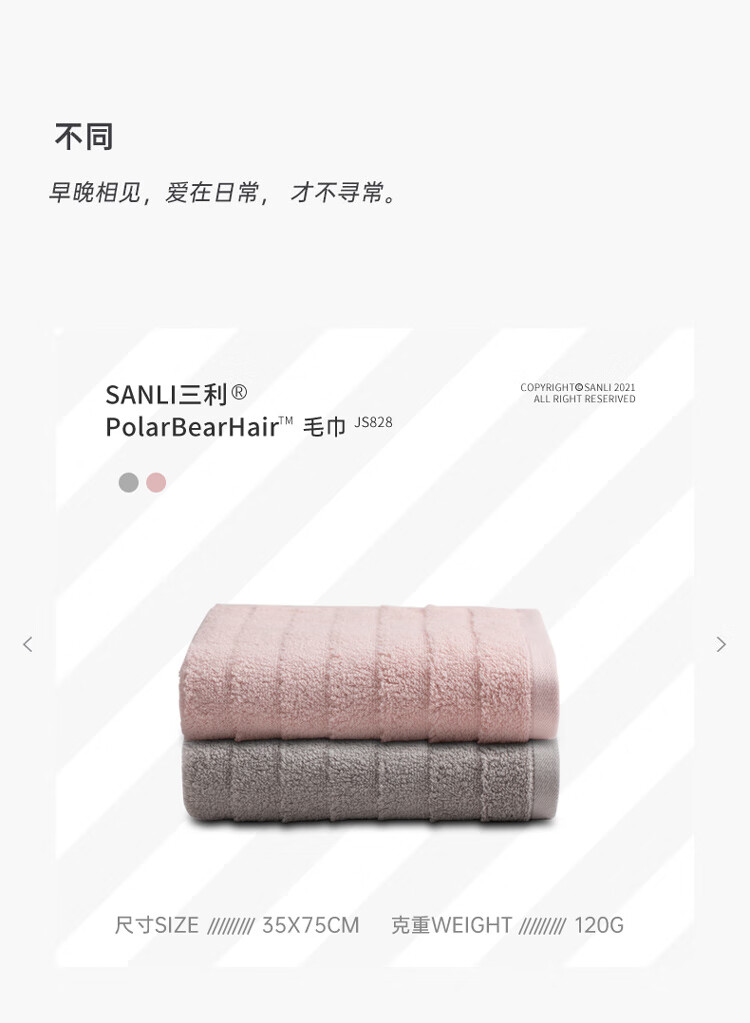 三利抗菌毛巾 纯棉柔软吸水洗澡洗脸毛巾2条装 120g加厚加大75*35cm 灰色/粉色 自营