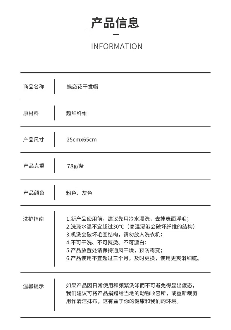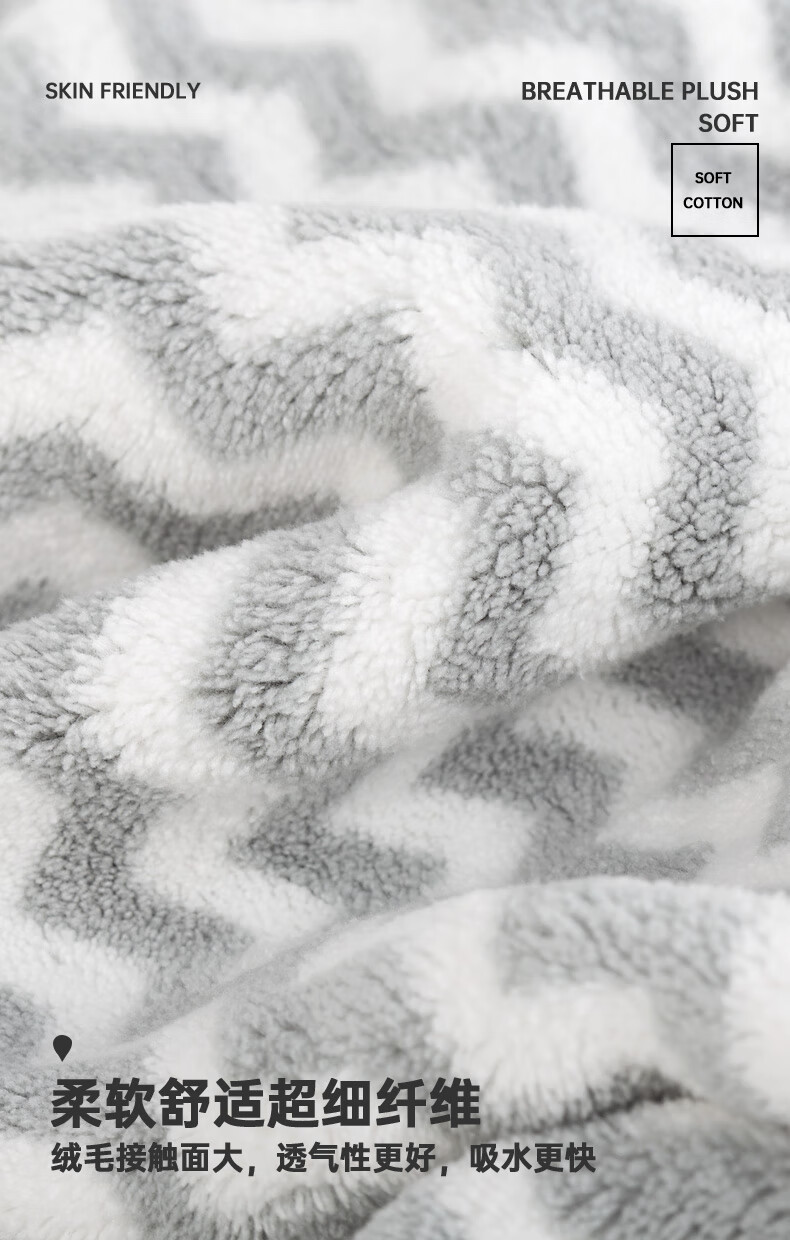 三利干发帽女 A类亲肤柔软吸水速干毛巾包头巾擦头巾浴帽可爱长发干发巾 浅灰色 自营