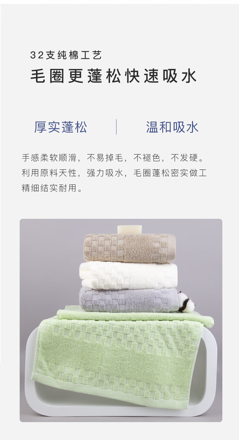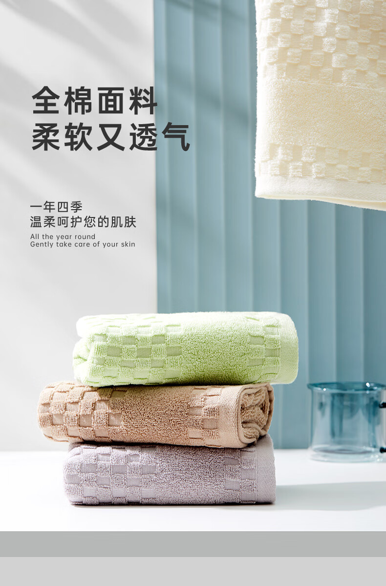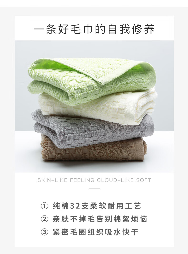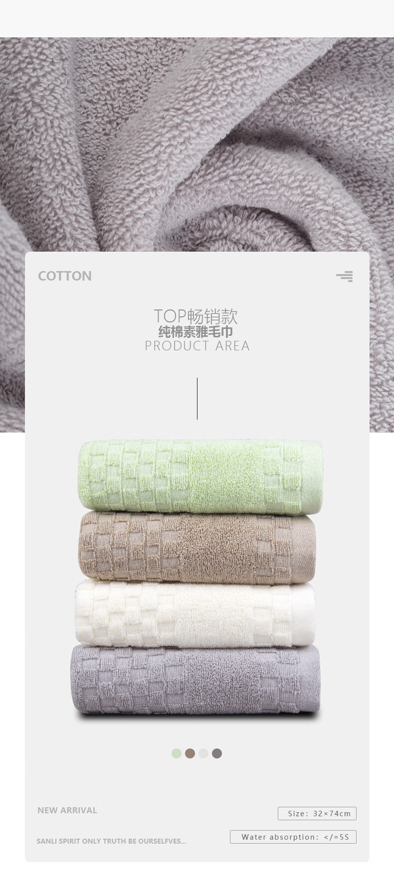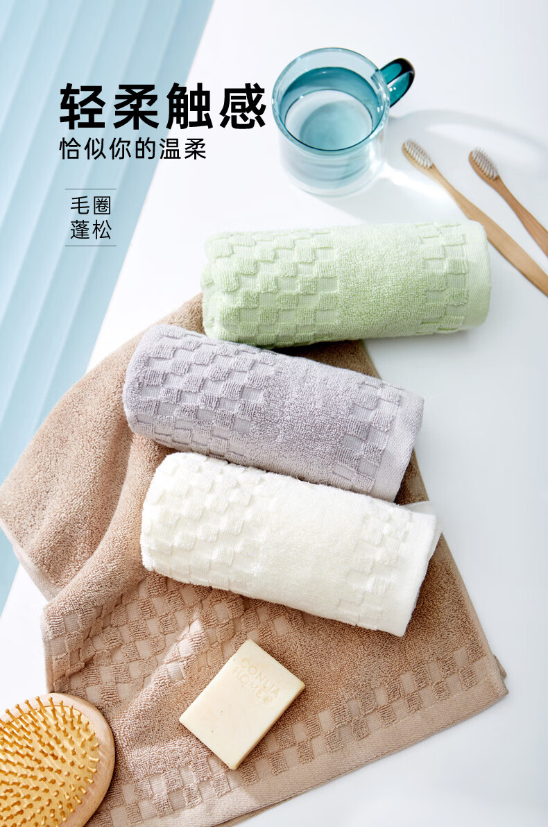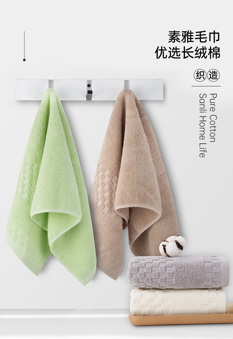 三利毛巾 纯棉柔软吸水面巾全棉成人洗脸毛巾 2条装(灰色+棕色) 自营
