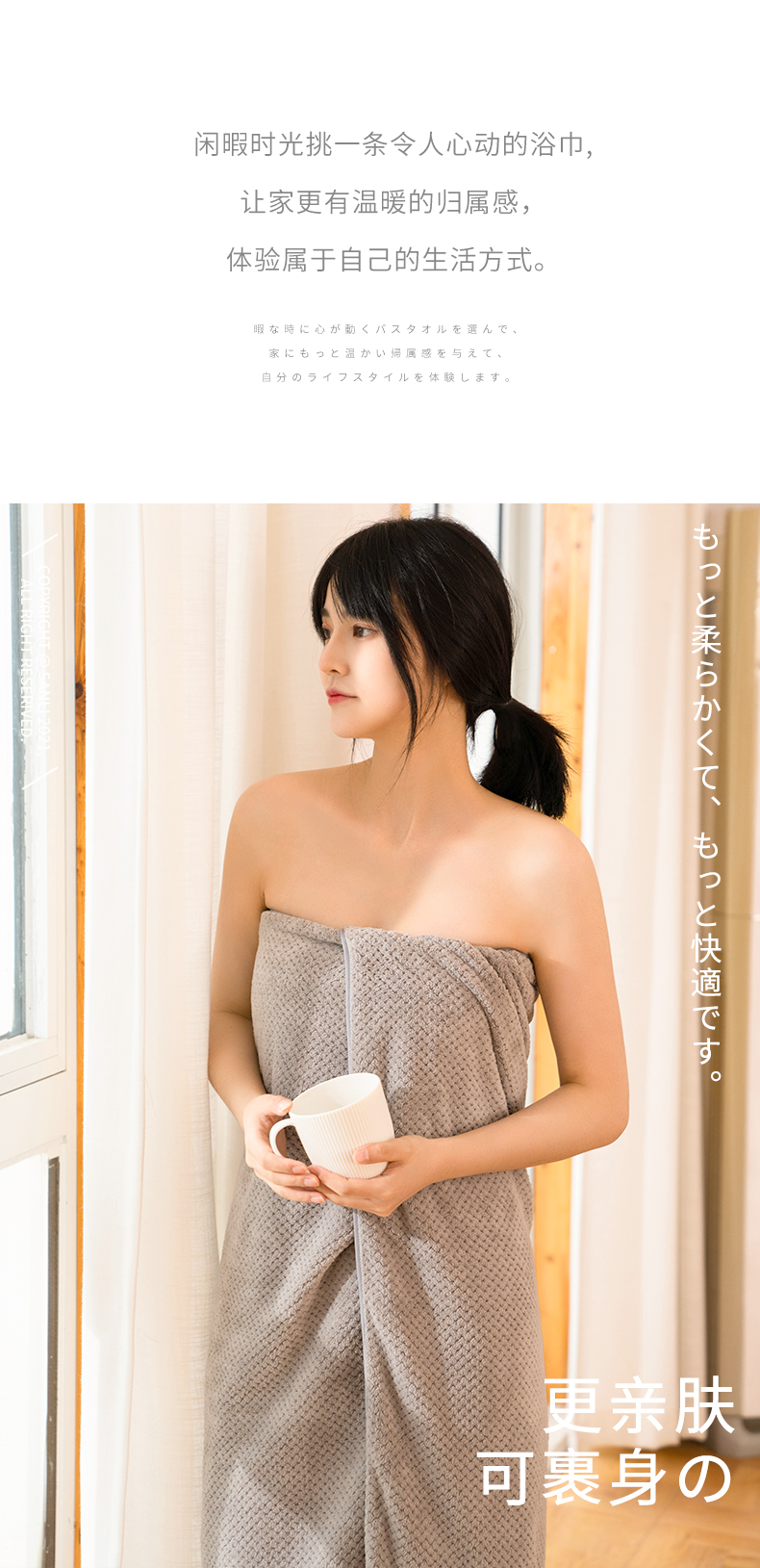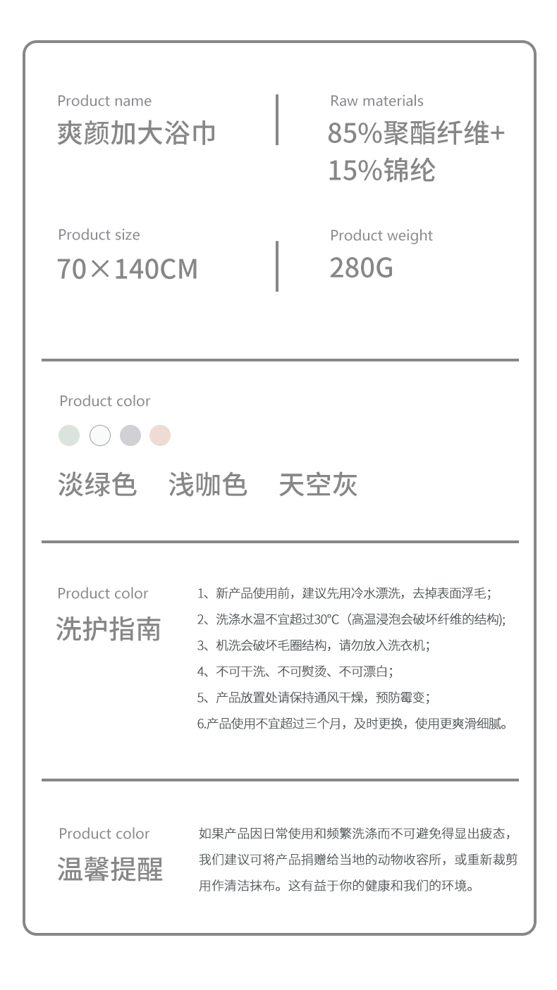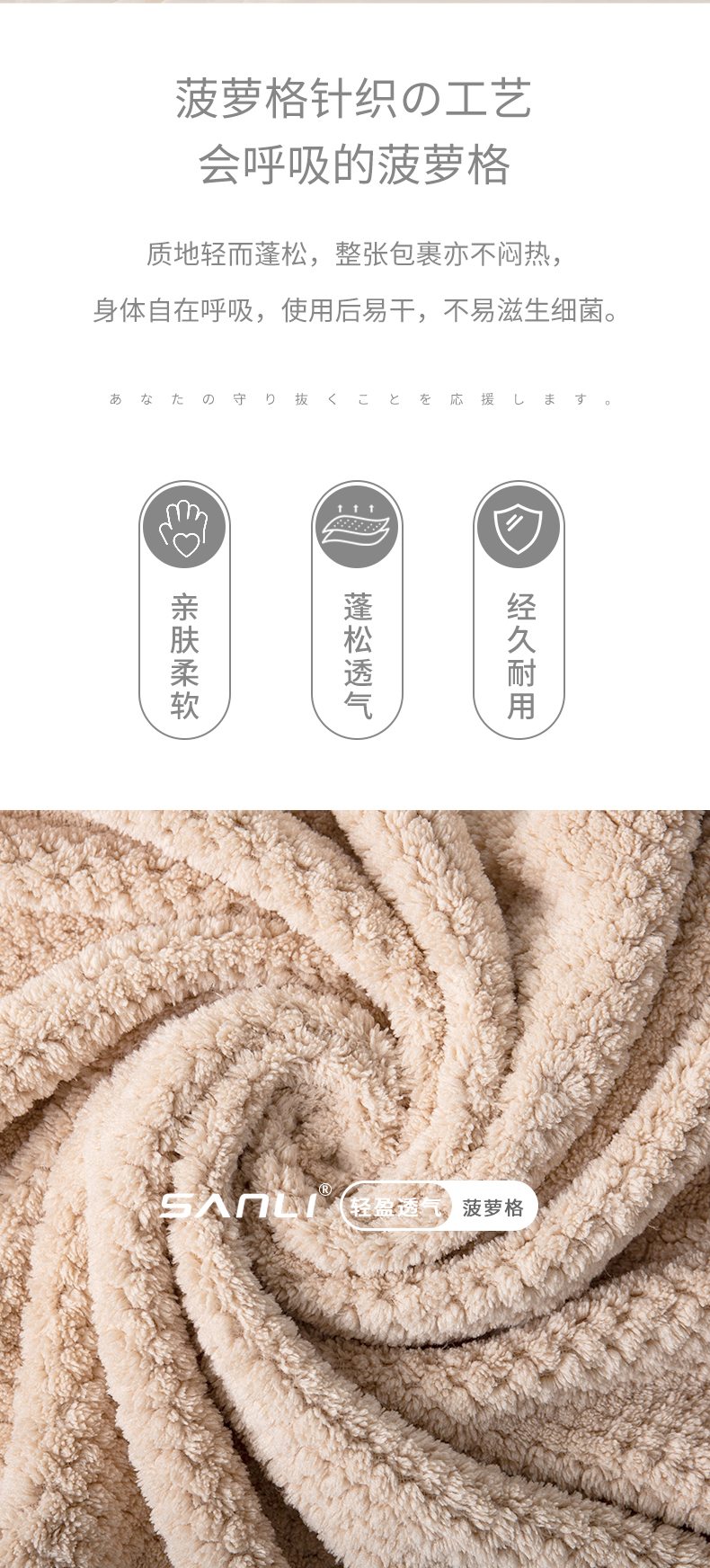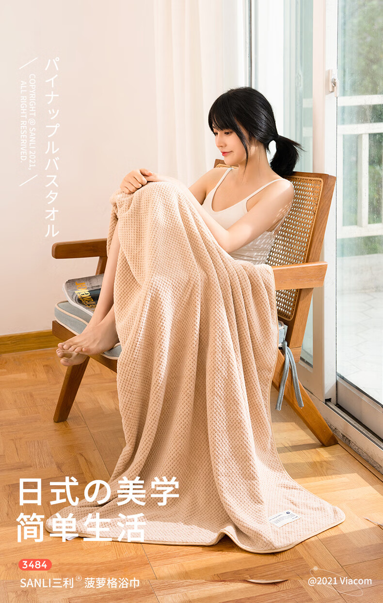 三利浴巾A类吸水速干成人大浴巾男女通用 70*140cm 285G 浅咖色 自营