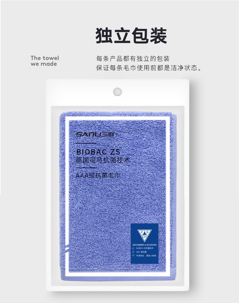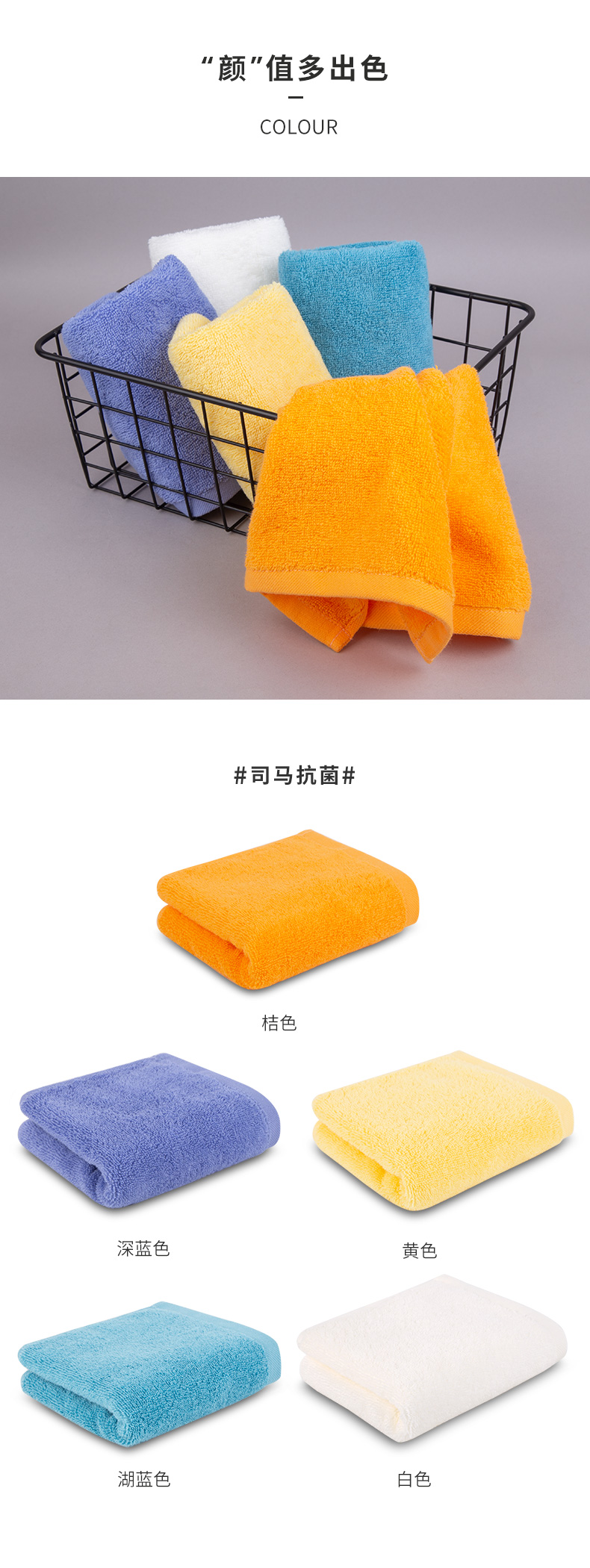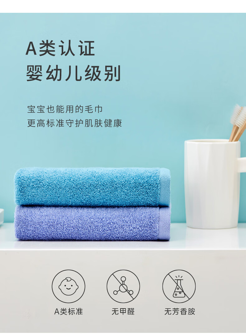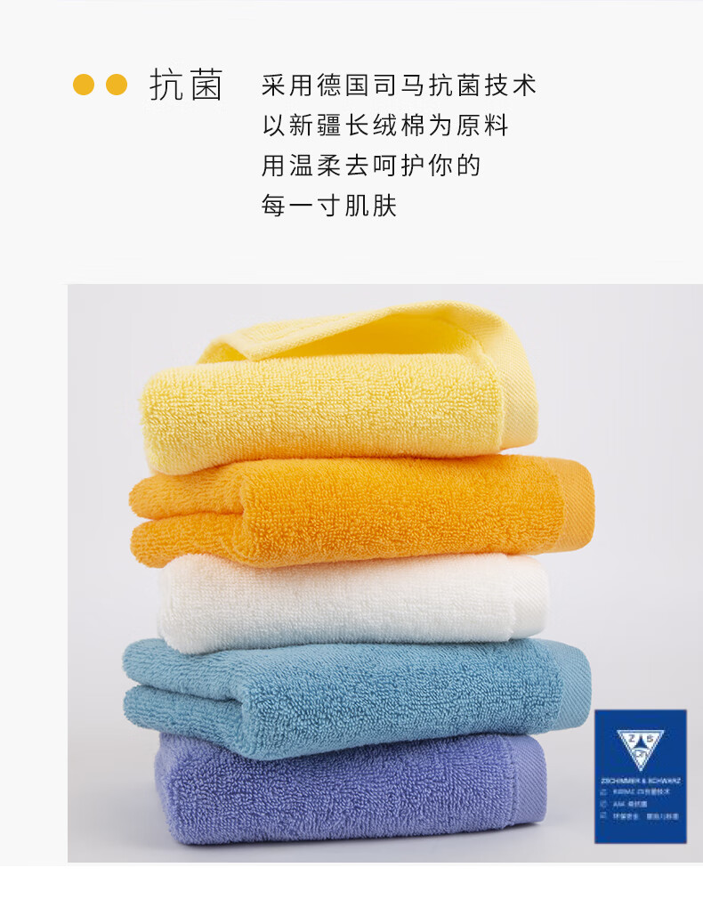三利抗菌毛巾5条装 纯棉A类柔软吸水小毛巾男女成人儿童面巾洗脸巾 60*30cm 青/蓝/橘/黄/白 自营