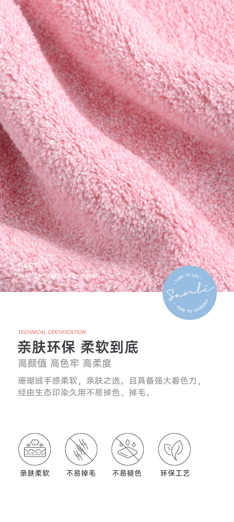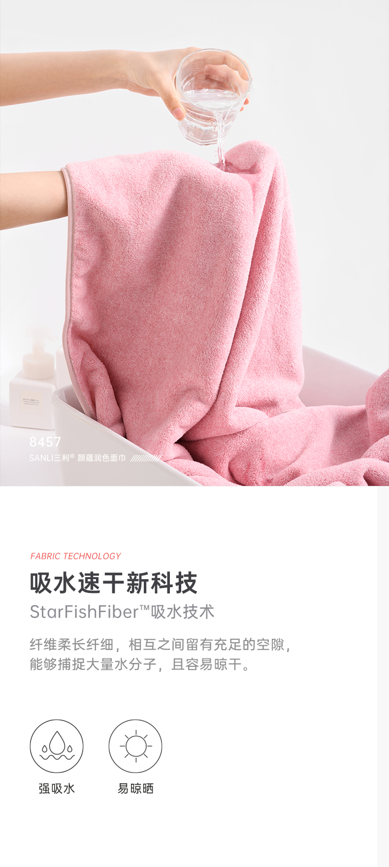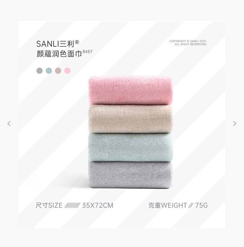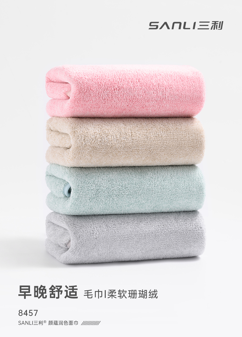三利毛巾4条装吸水速干洗脸家用男女情侣洗澡干发毛巾 35*72cm 自营