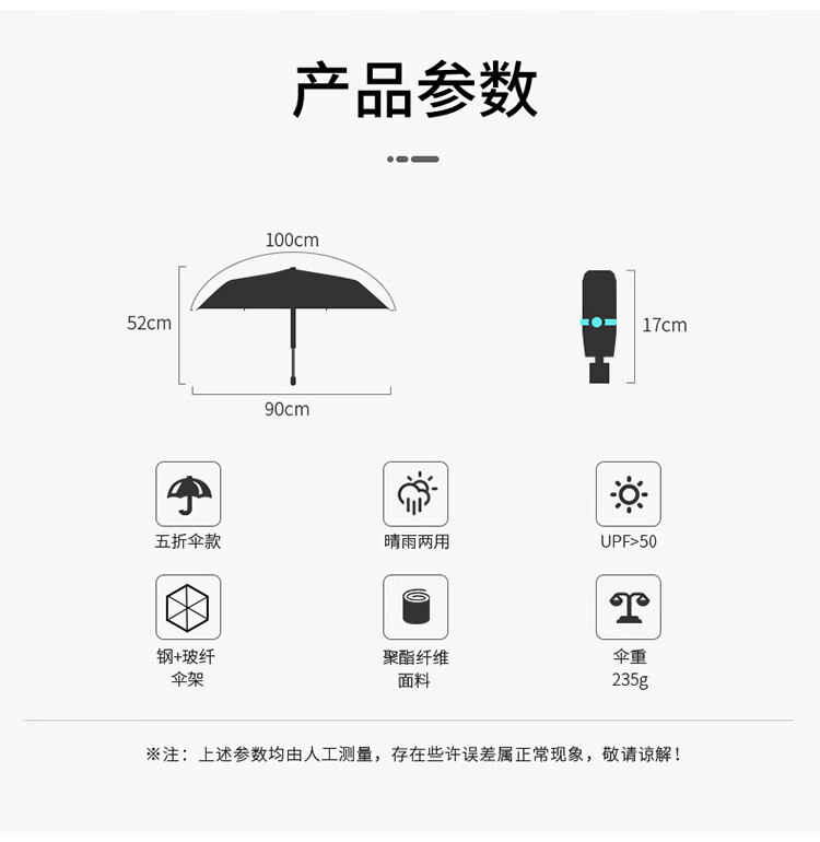 天堂伞 遮阳伞防紫外线五折太阳伞印花黑胶防晒伞 51113E可甜可盐 灰蓝