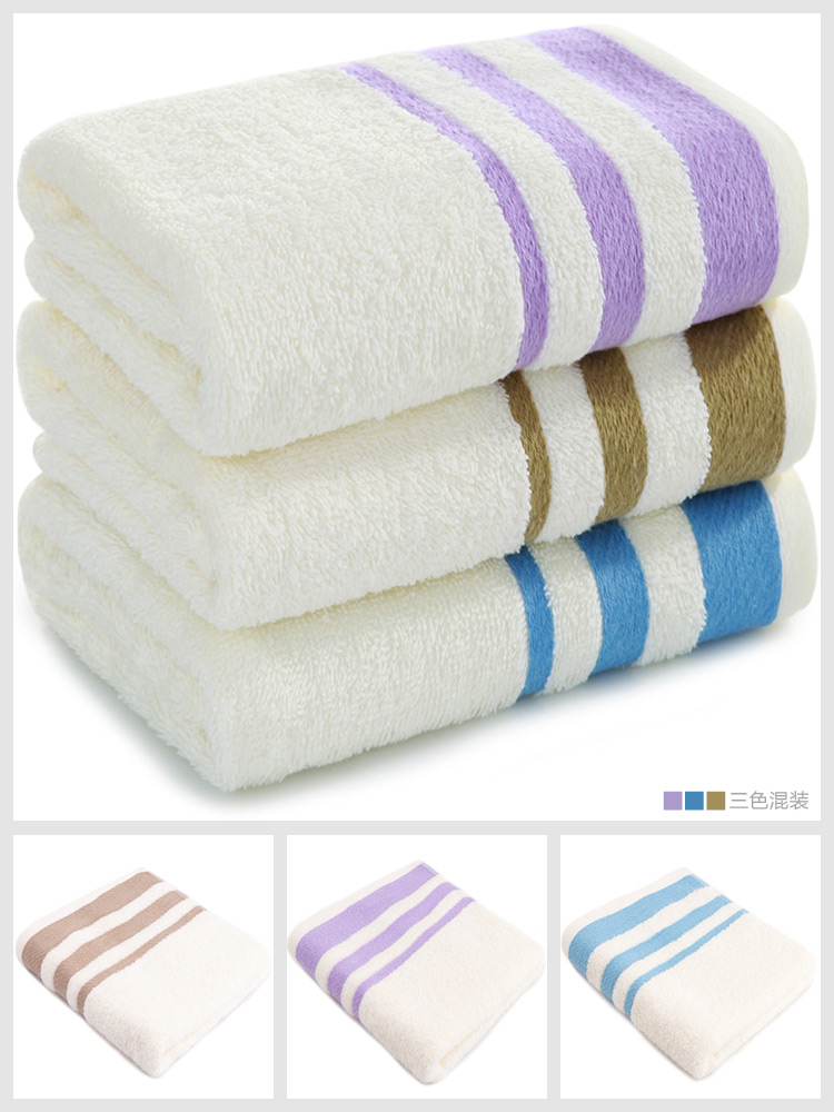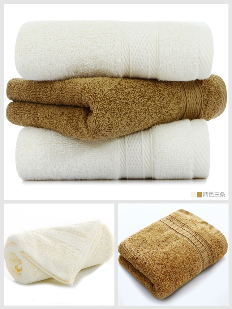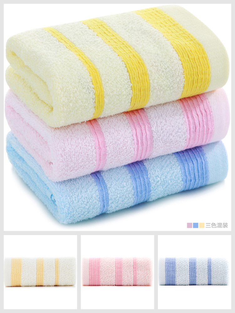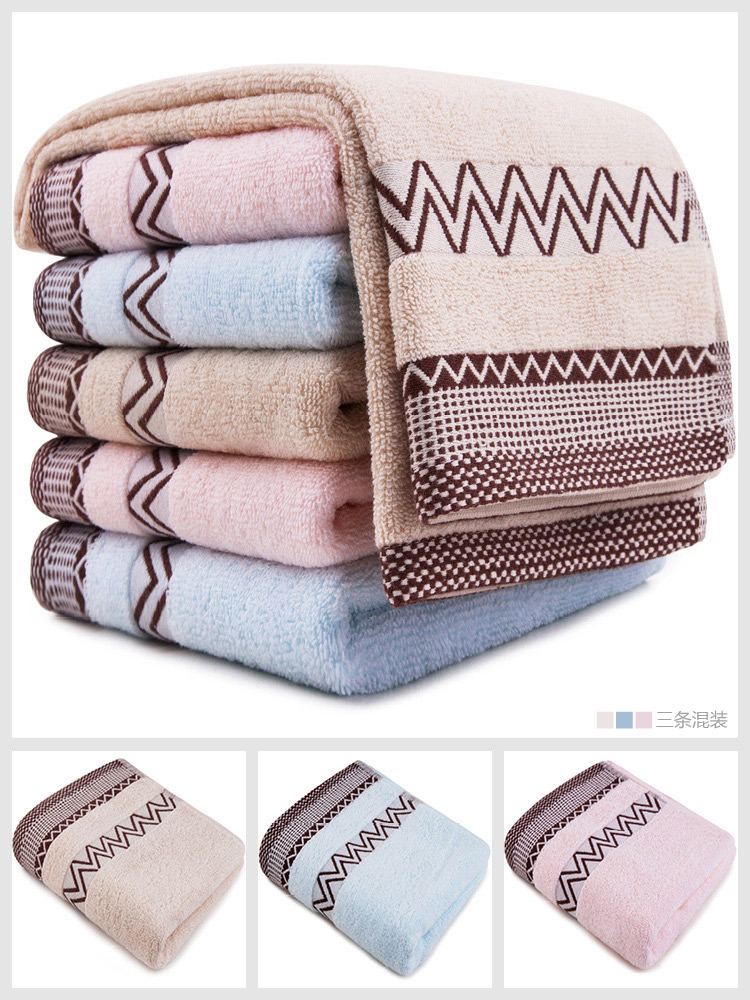 三利 毛巾家纺 纯棉柔软亲肤吸水毛巾3条装 浅蓝1条+浅粉1条+浅棕1条34×73cm