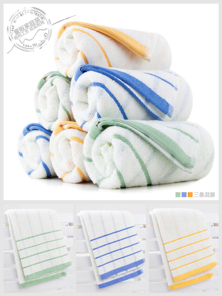 三利 毛巾家纺 纯棉A类标准简约素雅毛巾 34×71cm 豆绿+浅咖+浅蓝