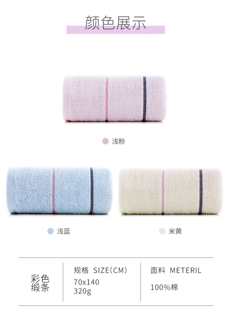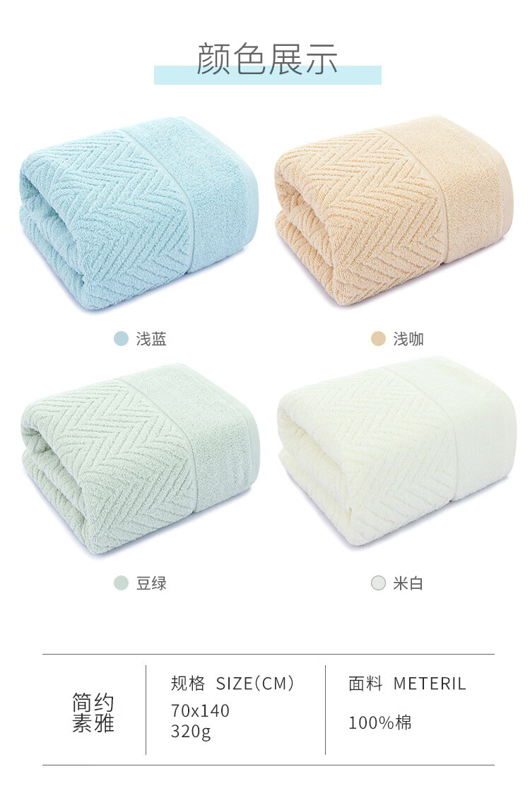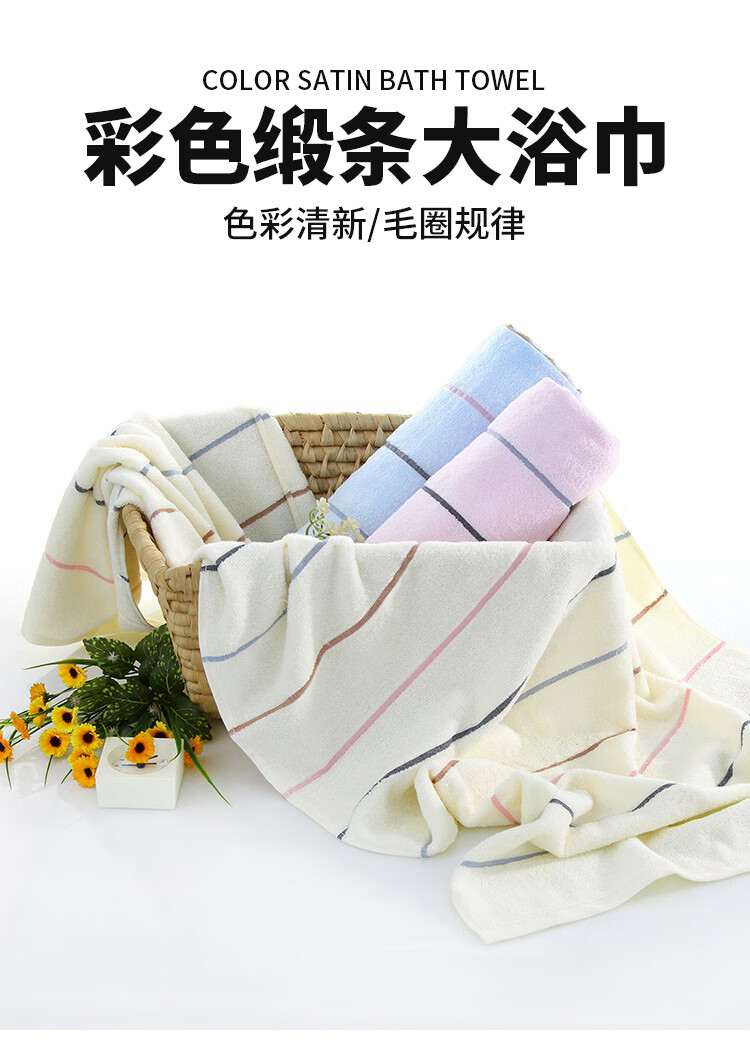 三利浴巾 纯棉成人男女柔软吸水亲肤大浴巾洗澡裹身巾 70×140cmA类简约素雅1条-颜色随机 自营