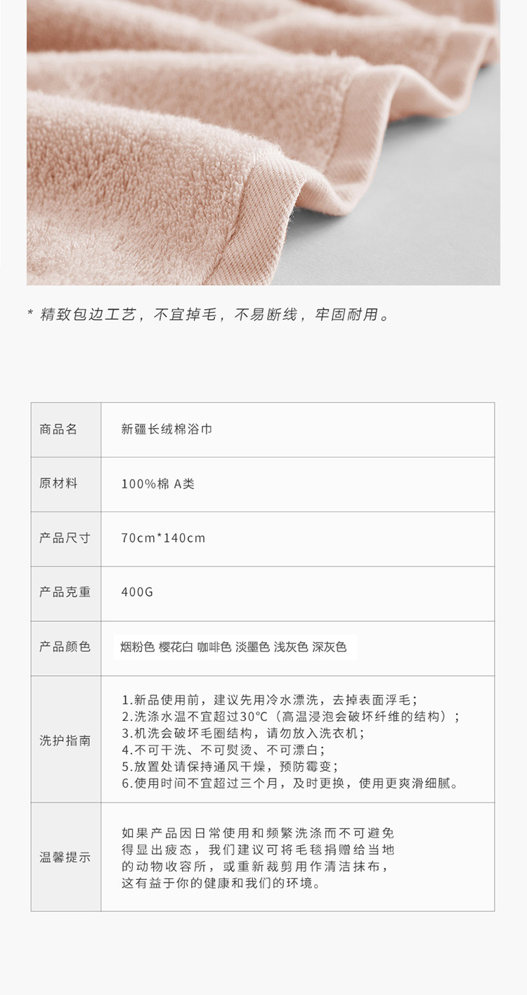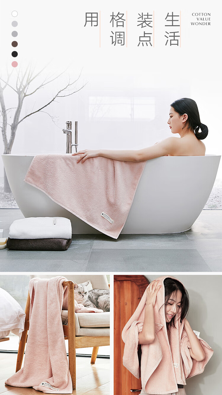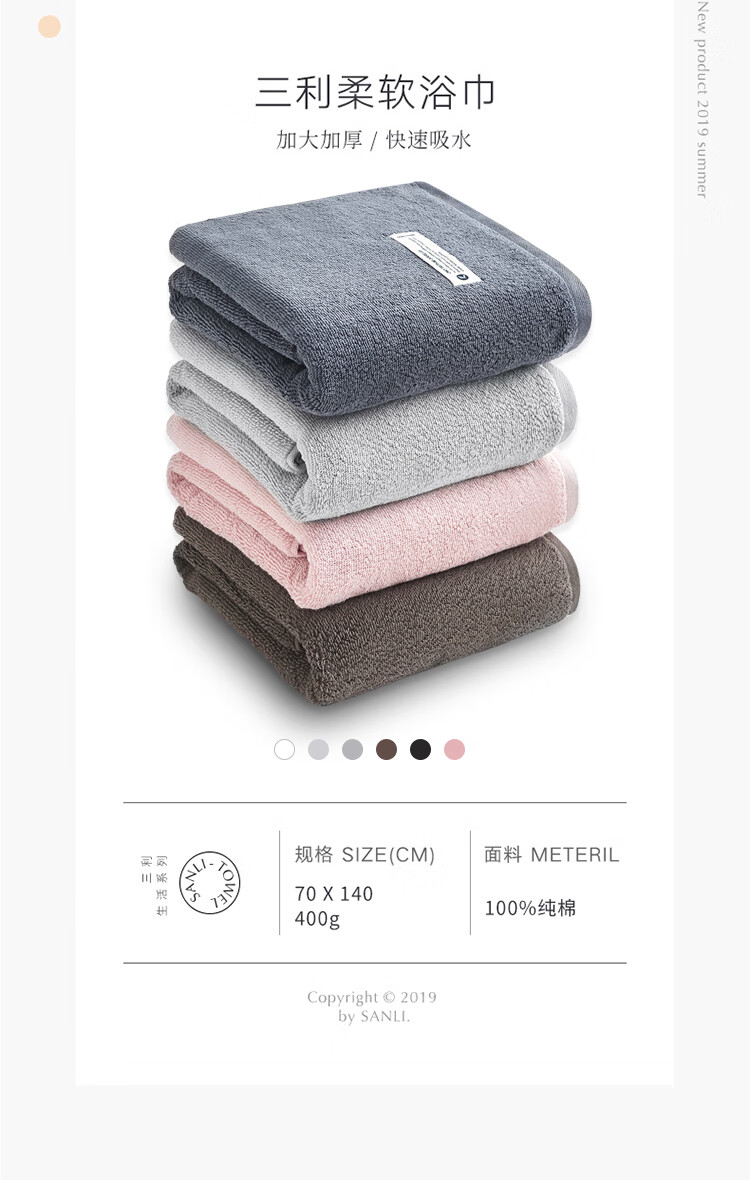 三利浴巾 纯棉高毛圈大浴巾 A类标准 70×140cm 新疆长绒棉男女柔软吸水裹身洗澡巾 浅灰色 自营