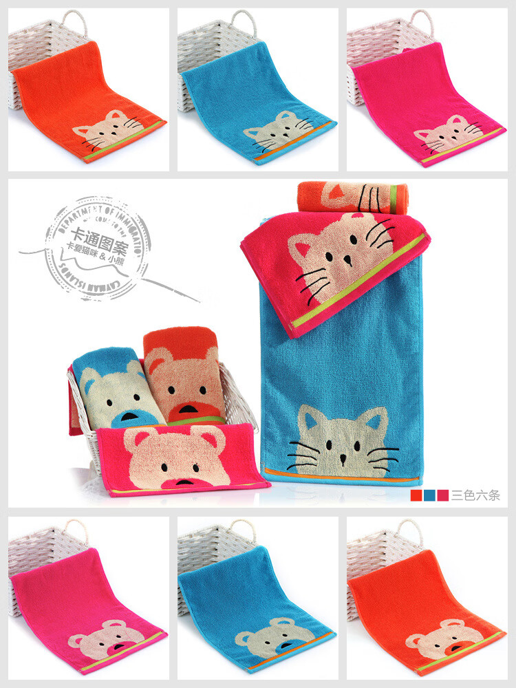 三利 纯棉卡通儿童毛巾6条 猫咪+小熊洗脸面巾 25x50cm 独立包装 猫咪毛巾3条+小熊毛巾3条 自营