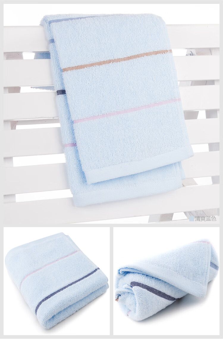 三利 纯棉布条缎档面巾 33x72cm 柔软吸水洗脸毛巾 淡蓝 自营