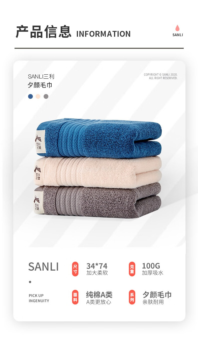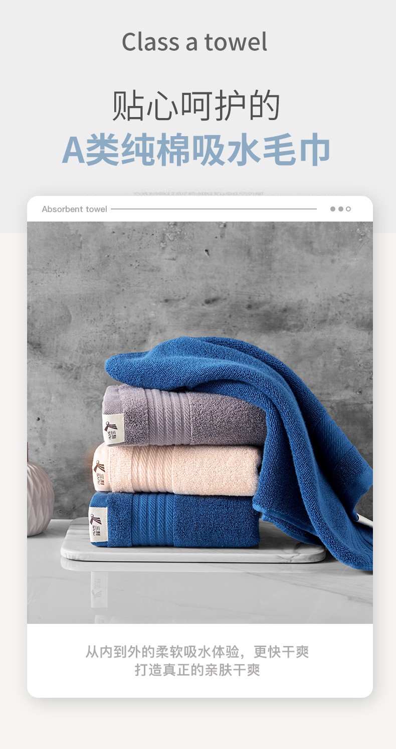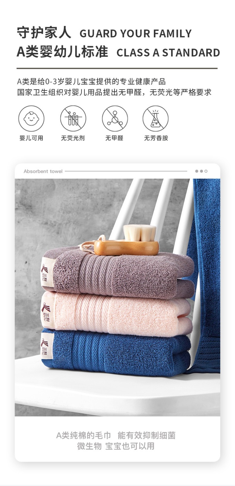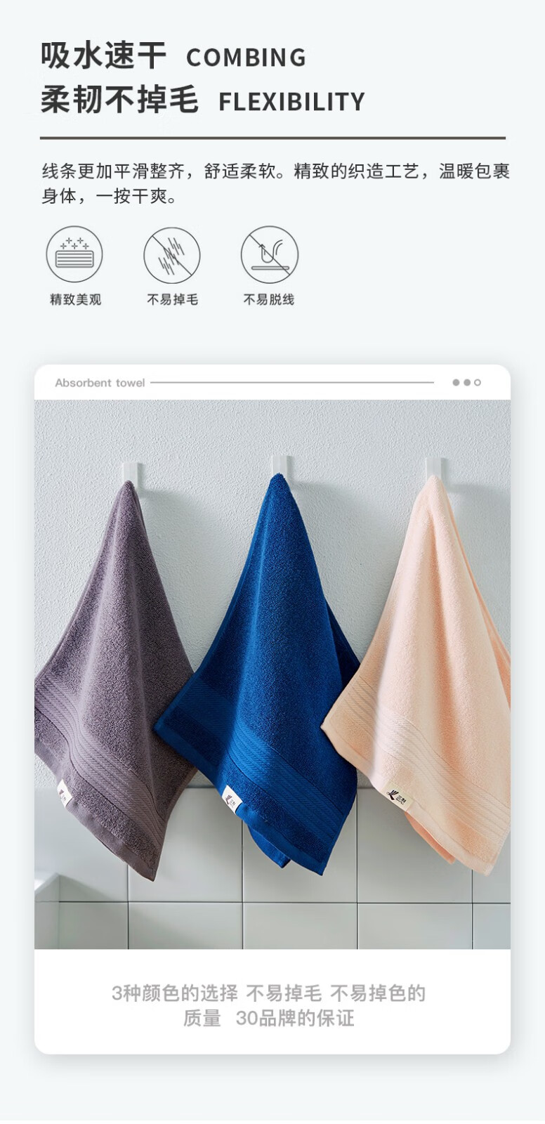 三利毛巾 柔软亲肤 纯棉吸水甄选酒店款新疆棉洗脸毛巾 A类标准 34*74cm 玫瑰粉+深邃蓝 自营