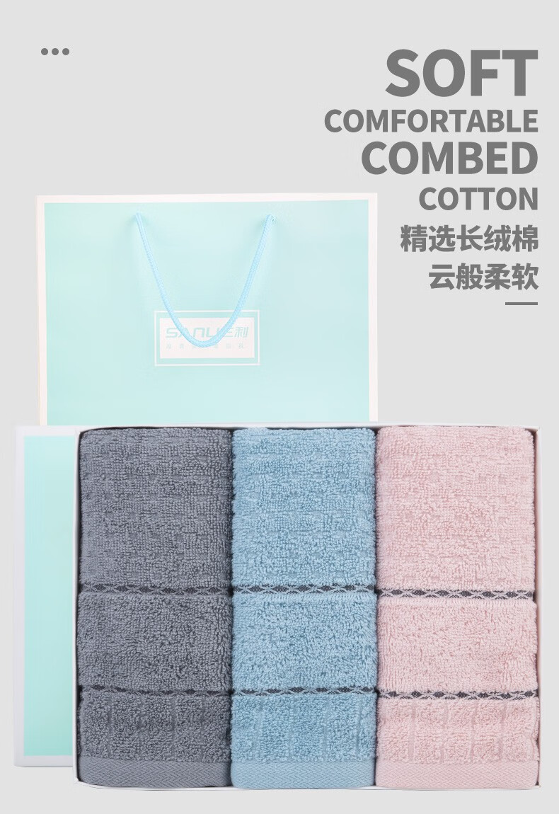 三利毛巾礼盒套装 2\\3条装毛巾礼盒礼品定制结婚伴手礼企业团购礼盒装送礼福利 含手提袋 帕拉图毛巾礼盒2条装 自营