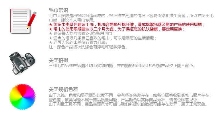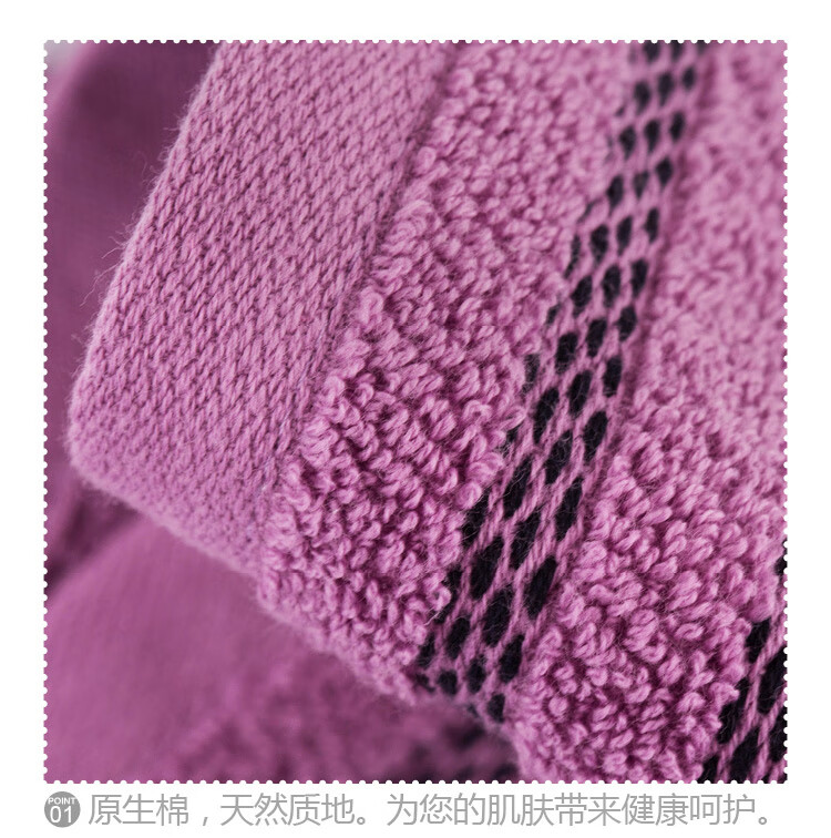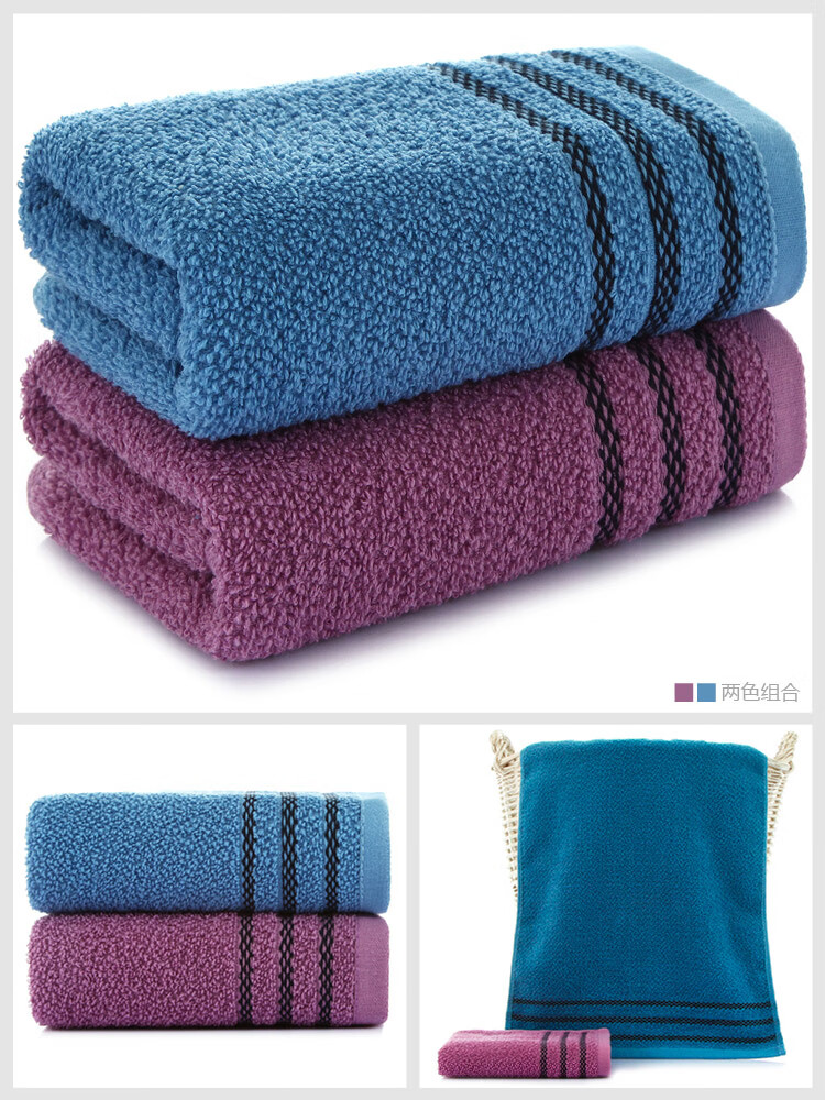 三利 纯棉素色缎档毛巾2条装 34×72cm 柔软吸水洗脸面巾 每条均独立包装 蓝色+紫色 自营