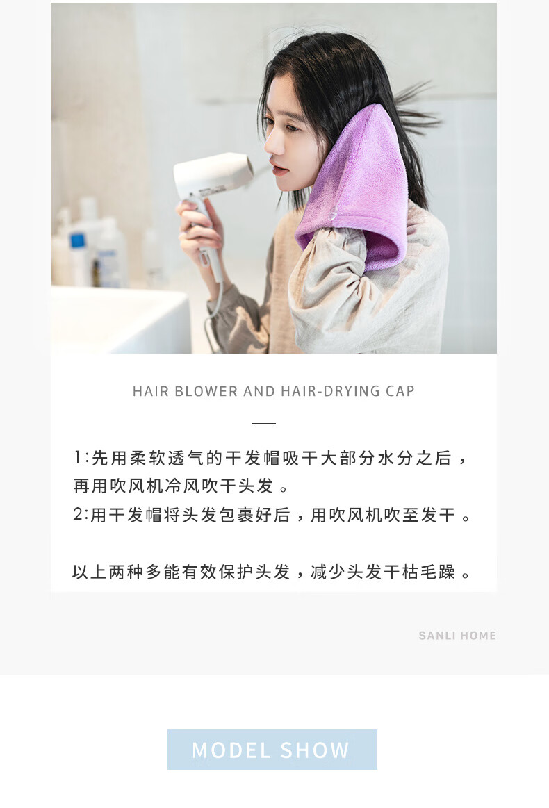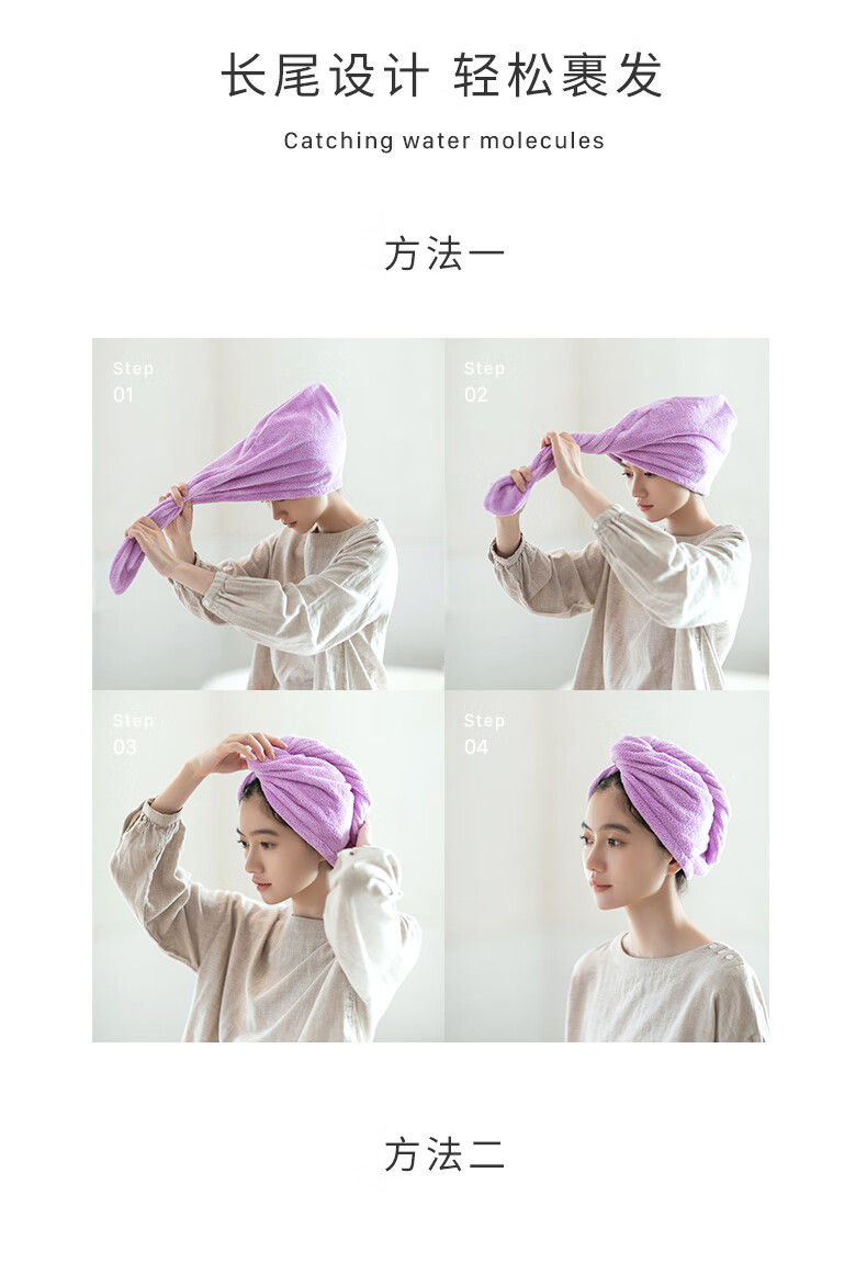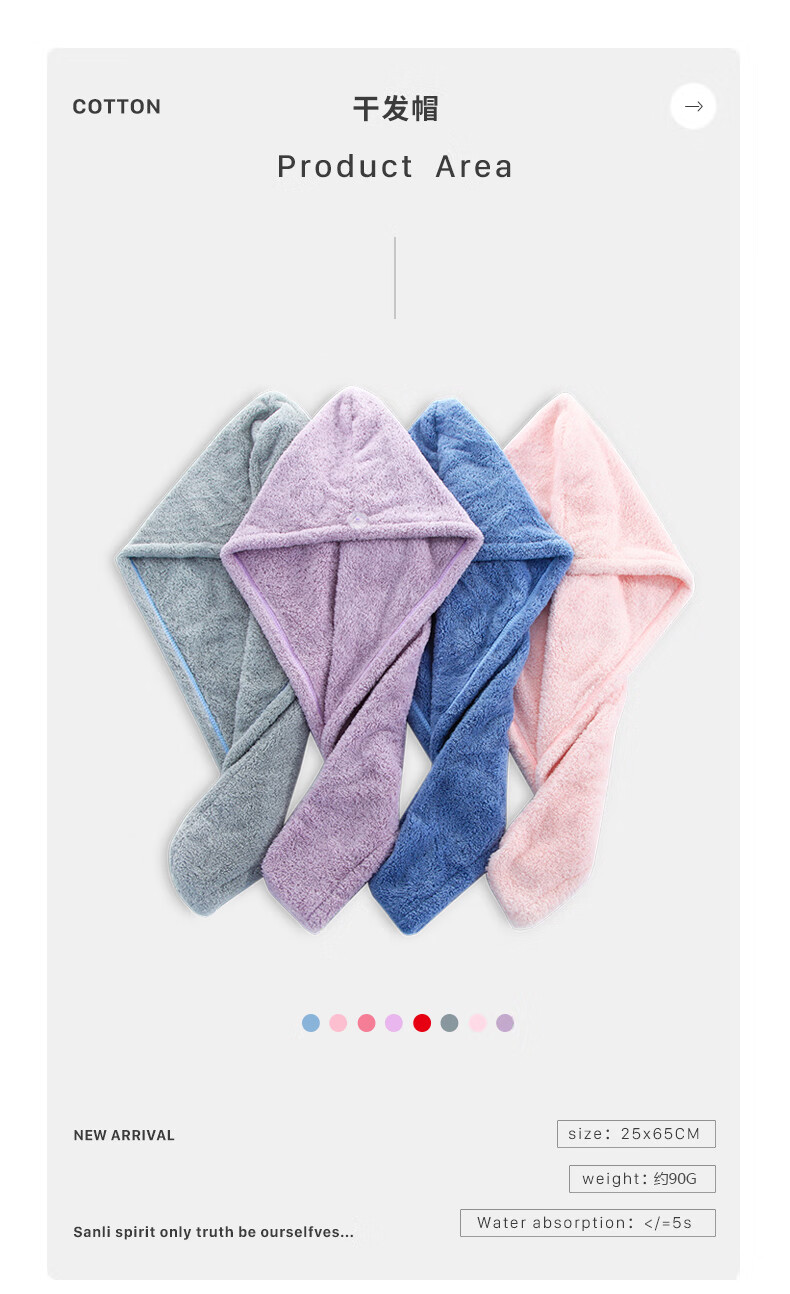 三利干发帽女吸水速干擦头发毛巾包头巾浴帽可爱长发速干毛巾 1条-太空灰 25*65 自营