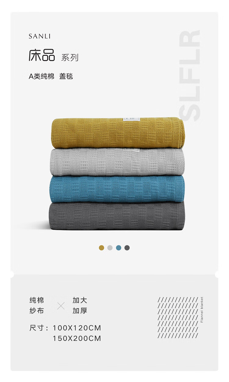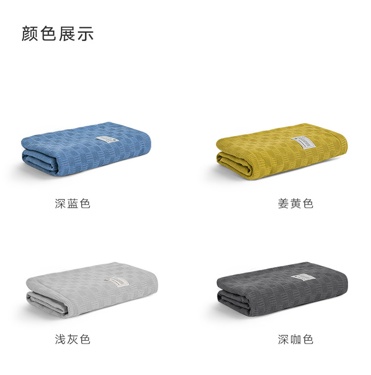 三利 纯棉A类毛巾被 素色格子盖毯 居家办公午休空调毯 柔软亲肤纱布毛巾被 姜黄色 155×200 自营
