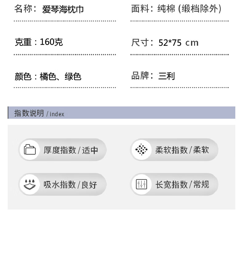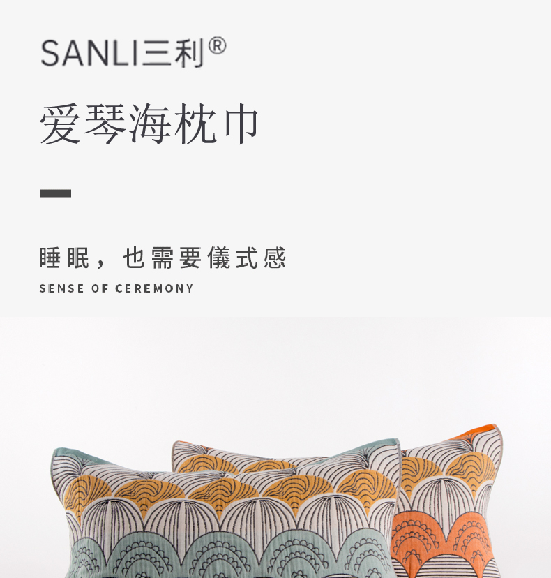 三利 枕巾礼盒2条 纯棉爱琴海枕巾套装 柔软吸水 绿色 自营