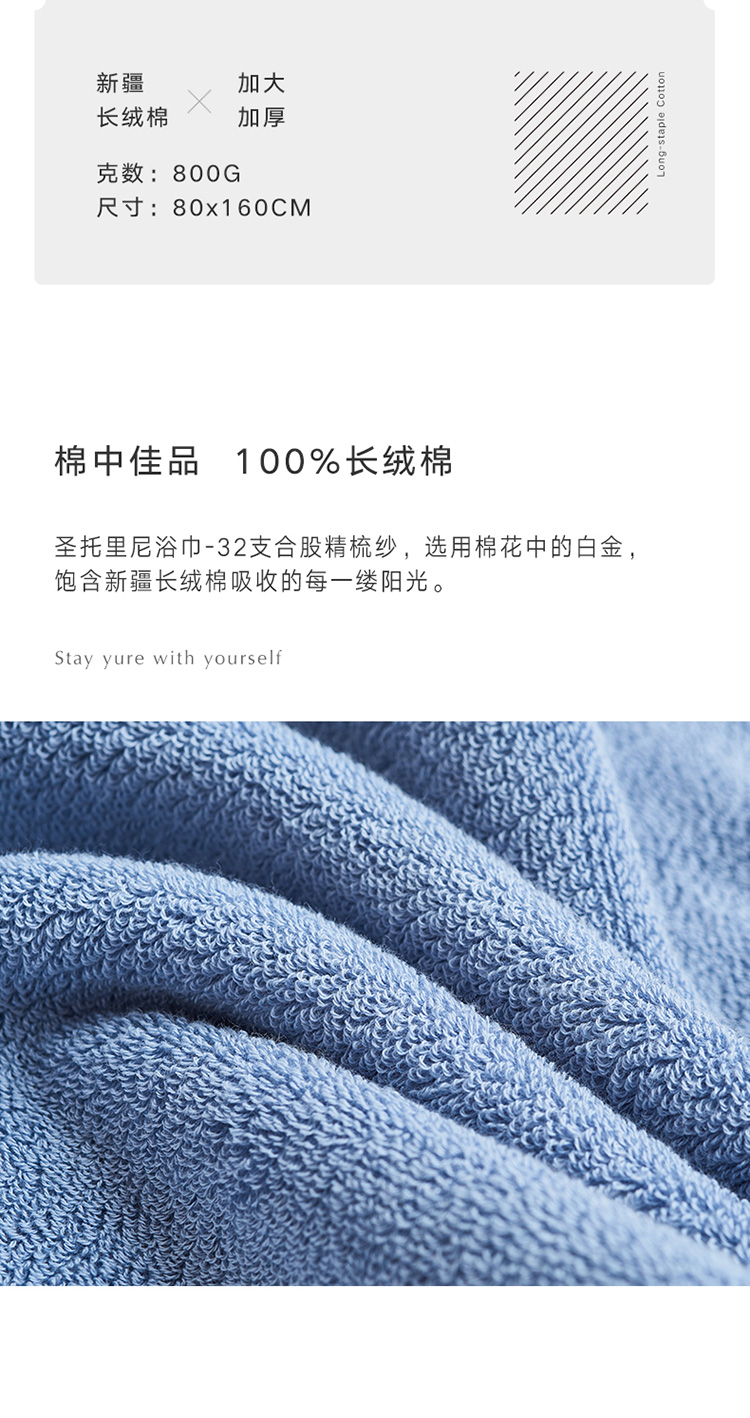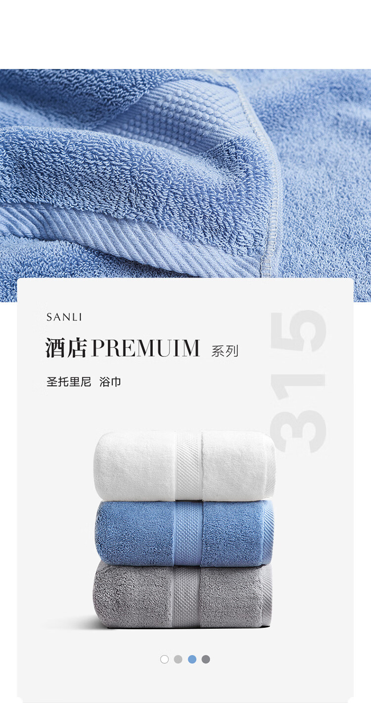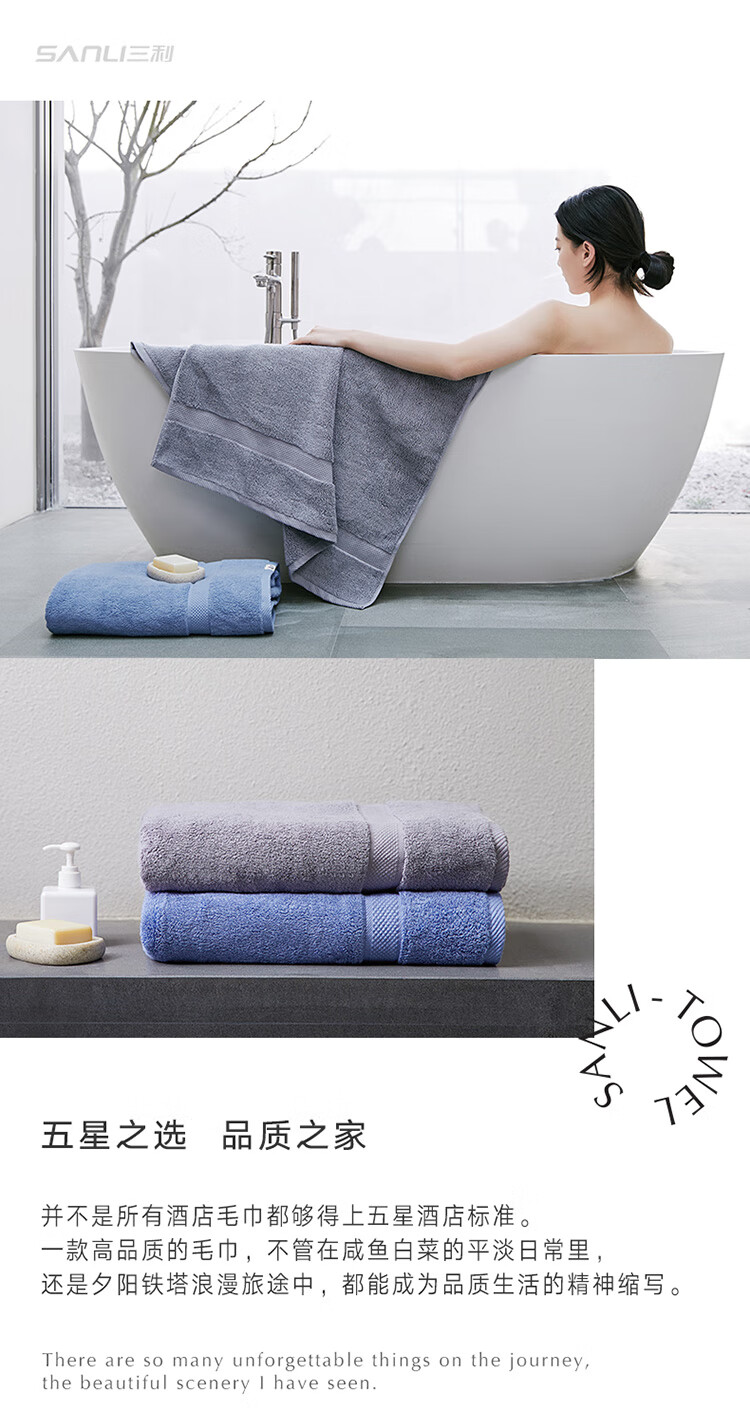 三利新疆长绒棉毛巾浴巾 五星级酒店男女同款A类纯棉加厚洗澡大毛巾裹身浴巾 商务灰1条浴巾80×160cm 自营