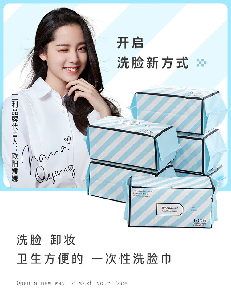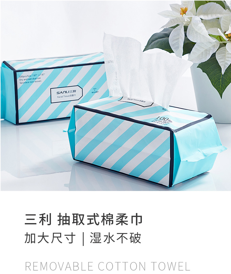 三利一次性洗脸巾美容加厚干湿两用擦脸巾洁面巾 差旅便携棉柔巾2包200抽 20*20cm 自营