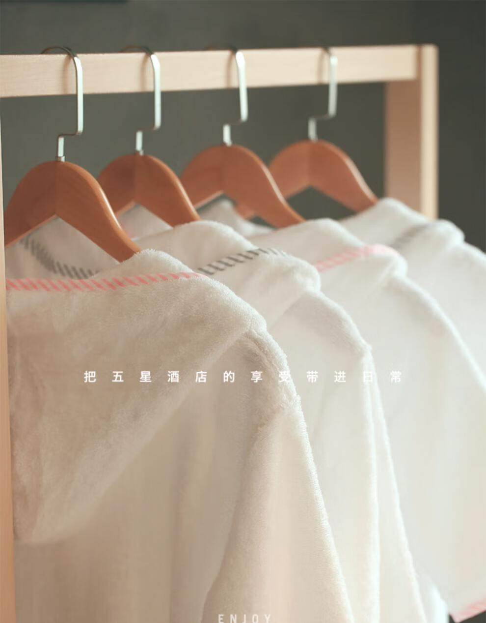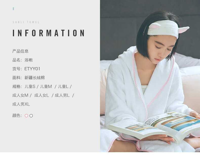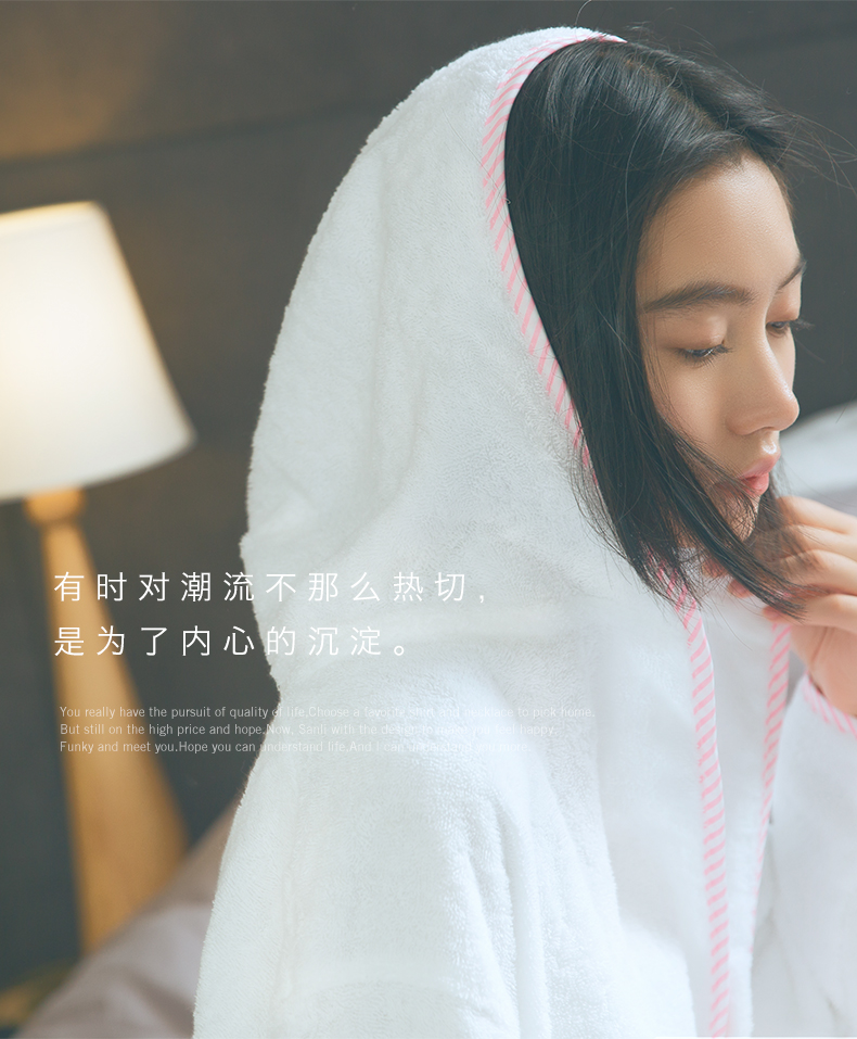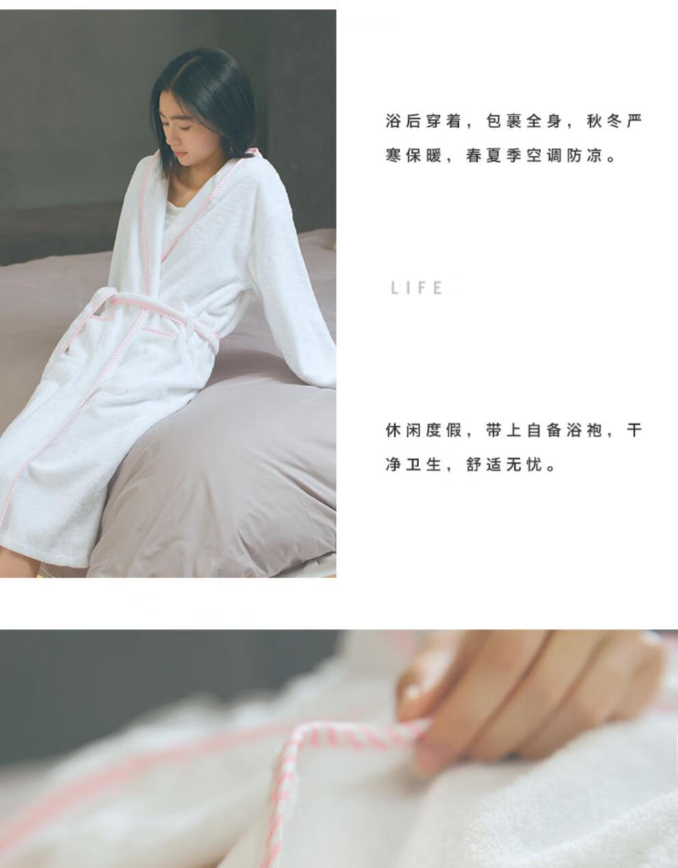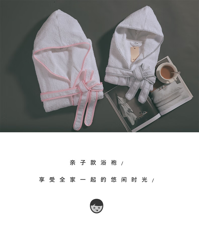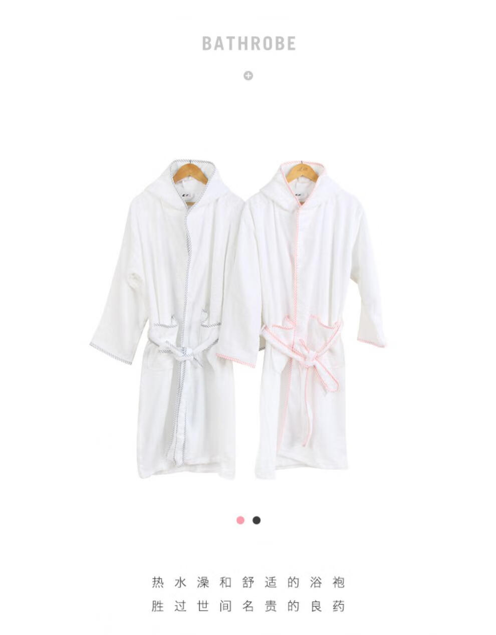 三利浴袍纯棉毛巾料秋冬吸水儿童宝宝带帽浴衣酒店浴袍 桃红边 儿童M 自营